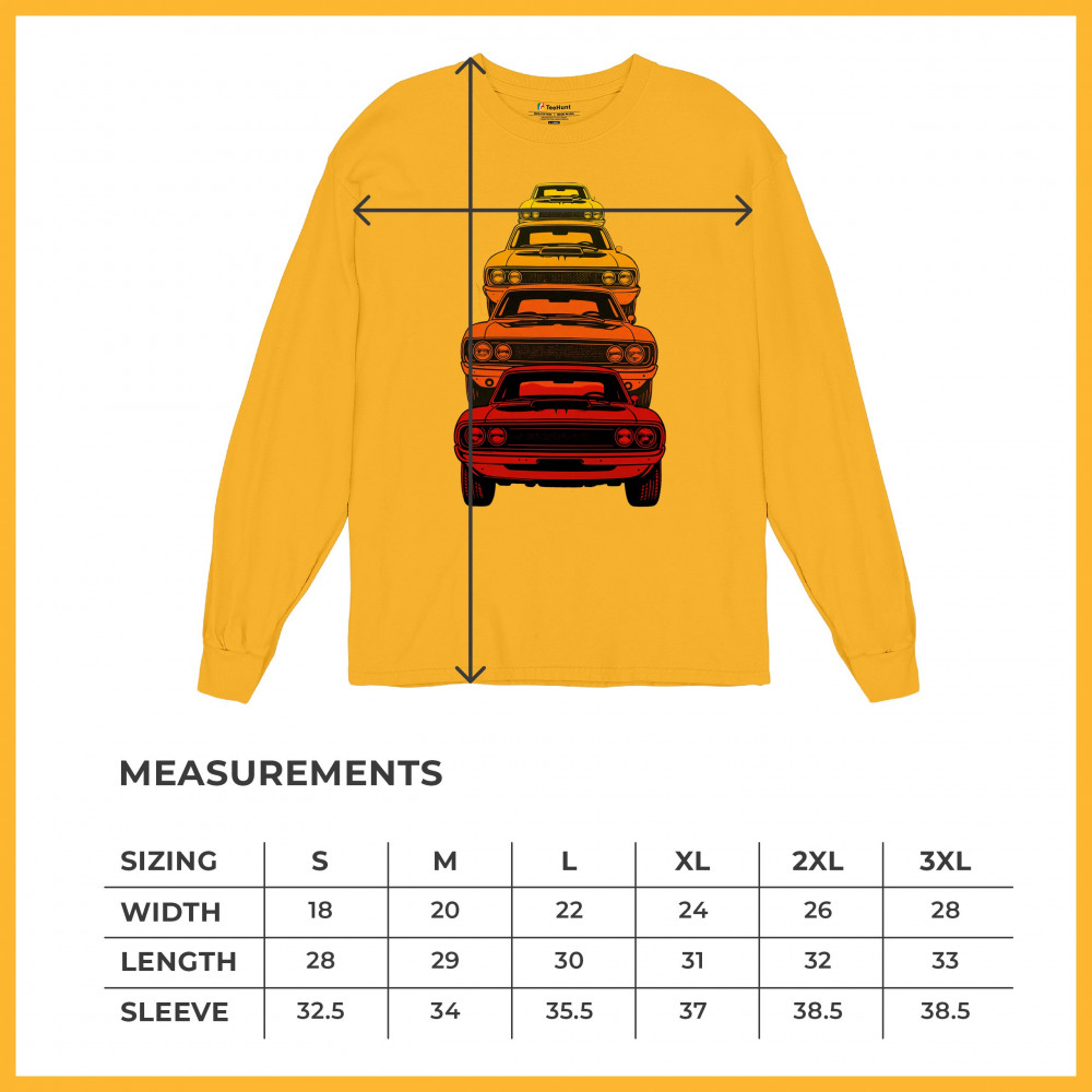 Celebrate horsepower heritage with this colorful lineup of classic muscle cars. Featuring a stacked gradient from red to yellow, this design brings bold retro attitude, V8 pride, and American torque to life. Perfect for collectors, gearheads, and fans of classic car power.