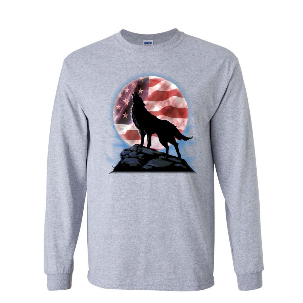 AMERICAN HOWLING WOLF long sleeve t-shirt wildlife animal wolves wilderness tee gray