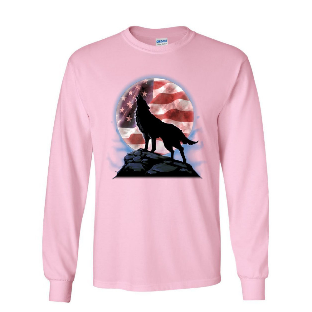 AMERICAN HOWLING WOLF long sleeve t-shirt wildlife animal wolves wilderness tee light pink