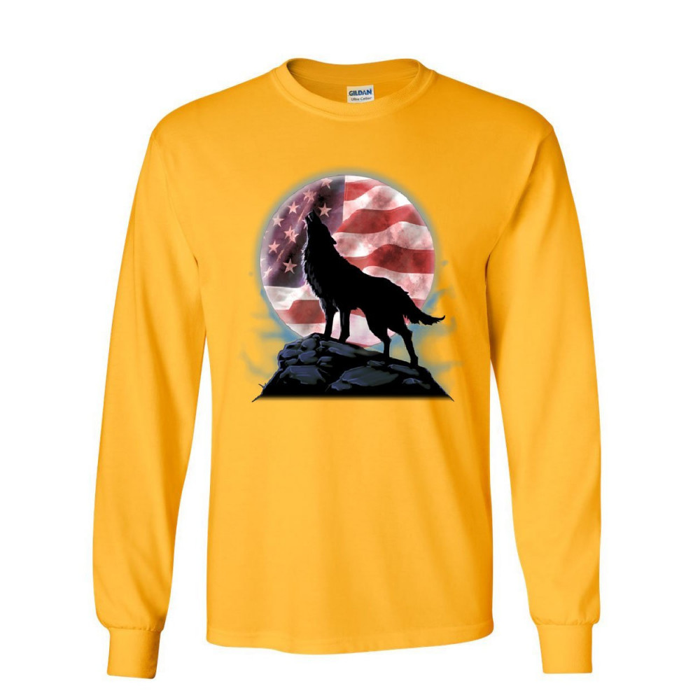 AMERICAN HOWLING WOLF long sleeve t-shirt wildlife animal wolves wilderness tee yellow