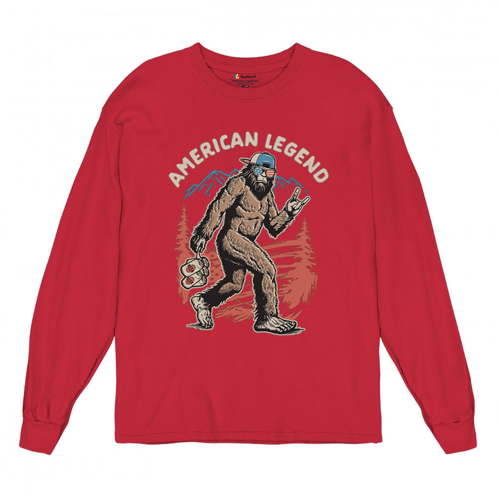 Funny Bigfoot design with patriotic flair—ideal for BBQs, beer lovers, campers, and cryptid fans who love to party in style!