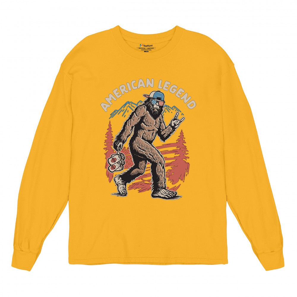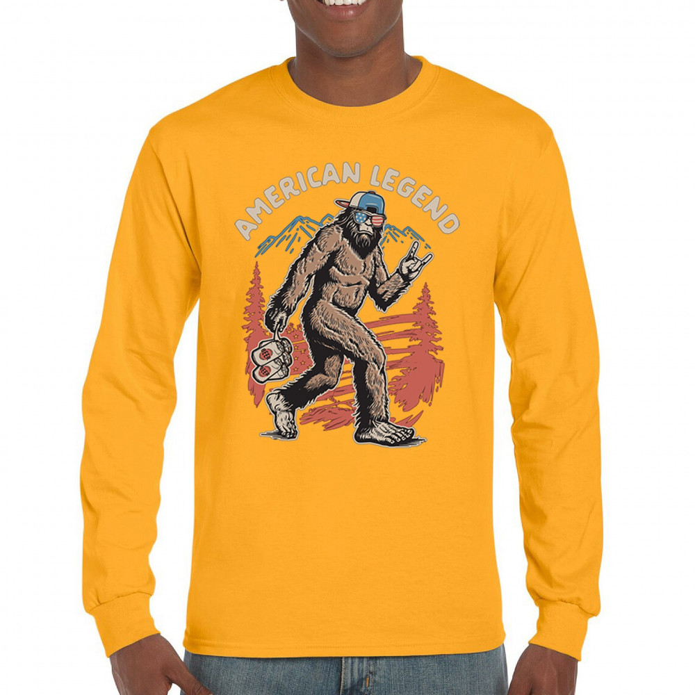 Bigfoot becomes the life of the patriotic party in this hilarious design featuring USA shades and a six-pack of beer. Perfect for barbecues, tailgates, and camping trips, it’s ideal for cryptid lovers, beer fans, and proud Americans. Great for Fourth of July celebrations or gifting the outdoorsman who has everything.