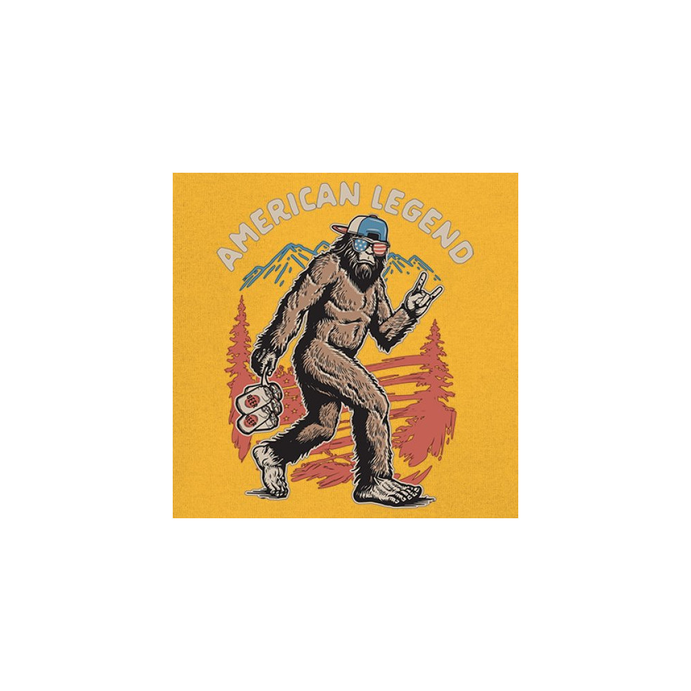 Funny Bigfoot design with patriotic flair—ideal for BBQs, beer lovers, campers, and cryptid fans who love to party in style!