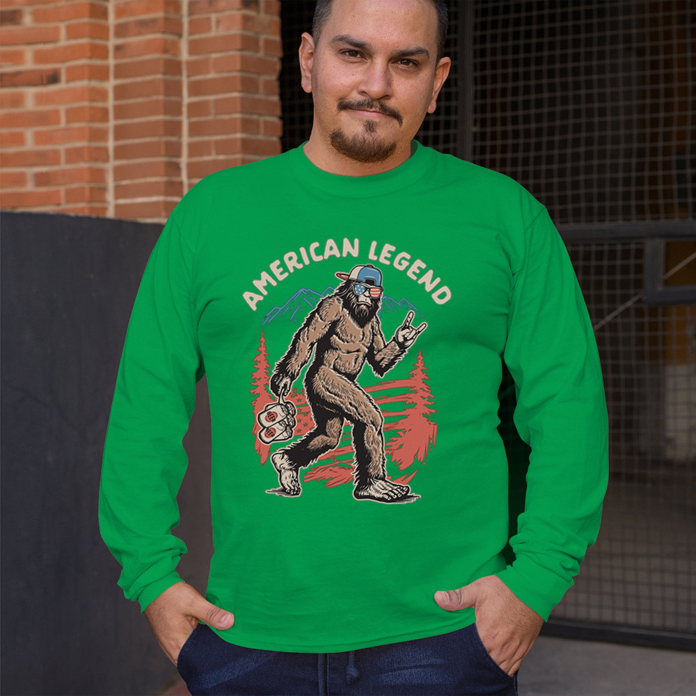 Bigfoot becomes the life of the patriotic party in this hilarious design featuring USA shades and a six-pack of beer. Perfect for barbecues, tailgates, and camping trips, it’s ideal for cryptid lovers, beer fans, and proud Americans. Great for Fourth of July celebrations or gifting the outdoorsman who has everything.