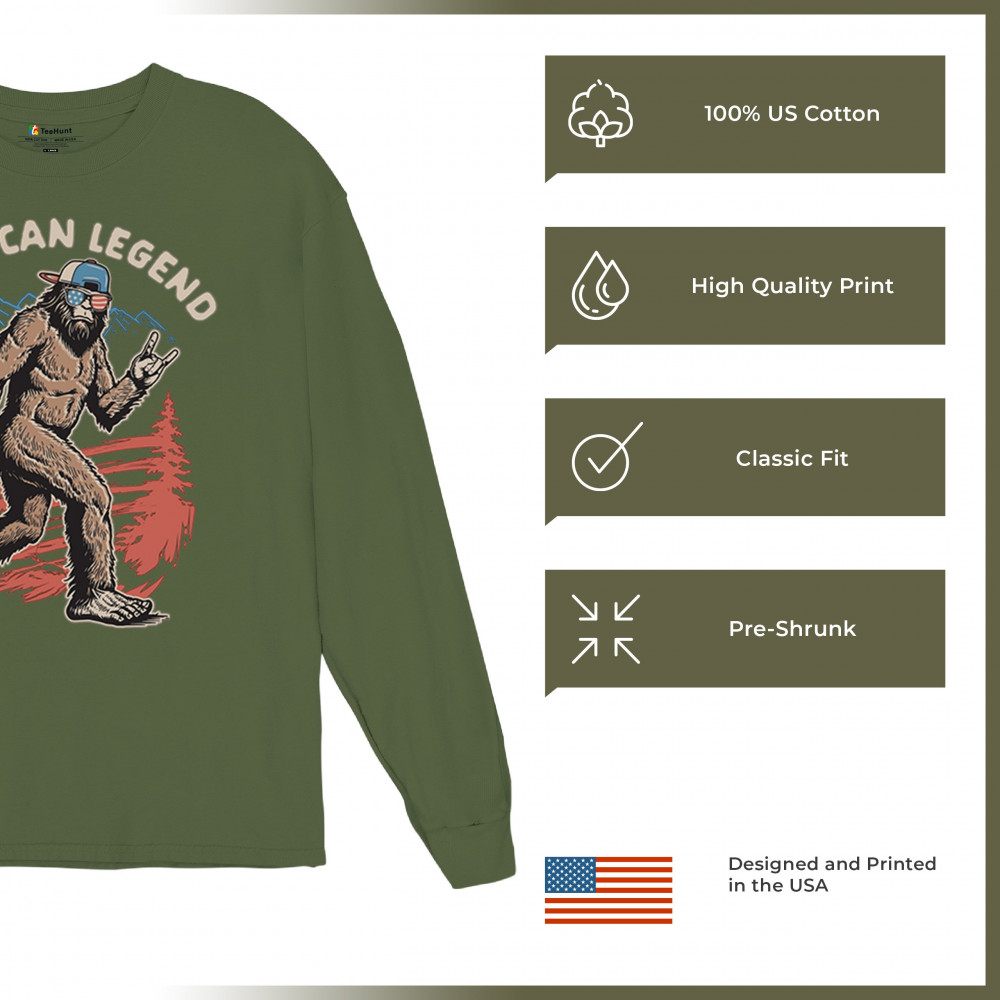 Funny Bigfoot design with patriotic flair—ideal for BBQs, beer lovers, campers, and cryptid fans who love to party in style!