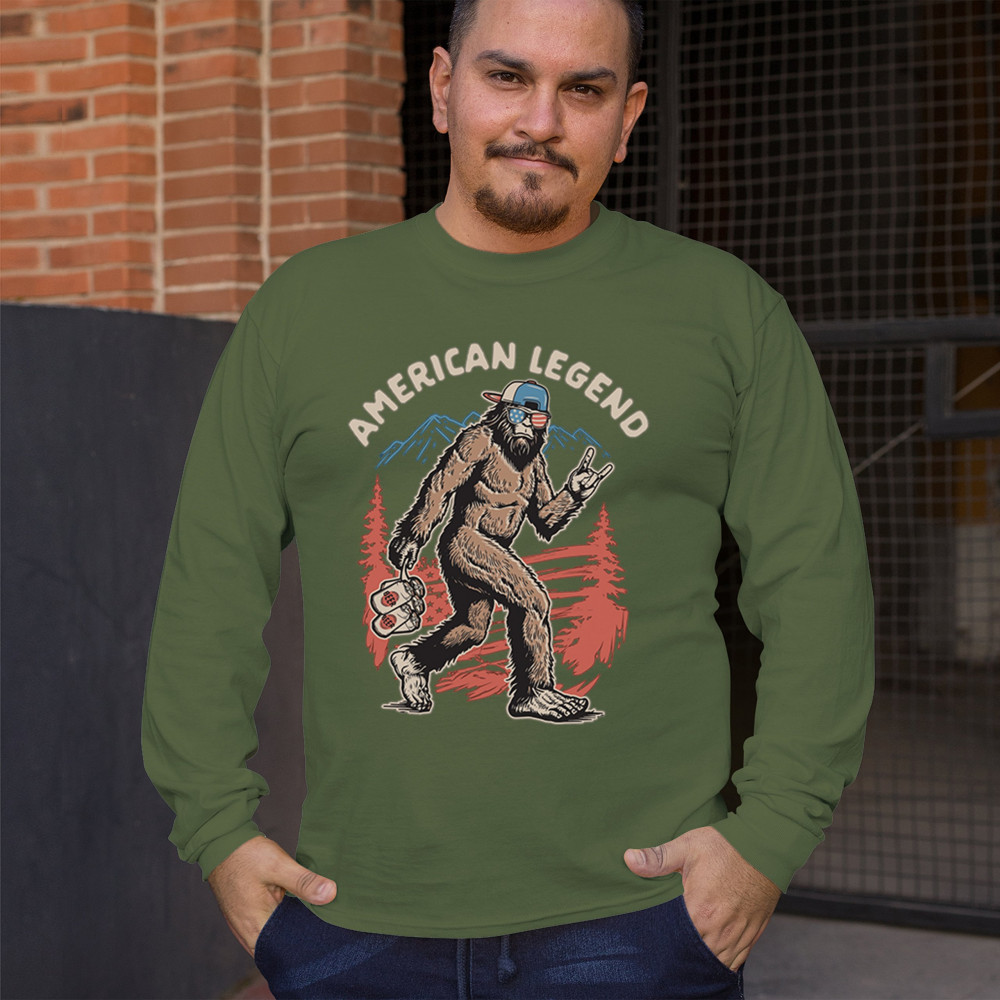 Bigfoot becomes the life of the patriotic party in this hilarious design featuring USA shades and a six-pack of beer. Perfect for barbecues, tailgates, and camping trips, it’s ideal for cryptid lovers, beer fans, and proud Americans. Great for Fourth of July celebrations or gifting the outdoorsman who has everything.
