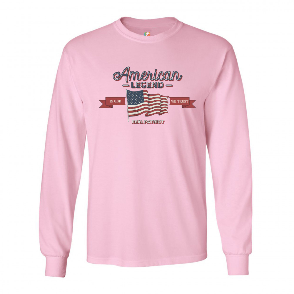 AMERICAN LEGEND REAL PATRIOT long sleeve t-shirt in god we trust 4th of july pink