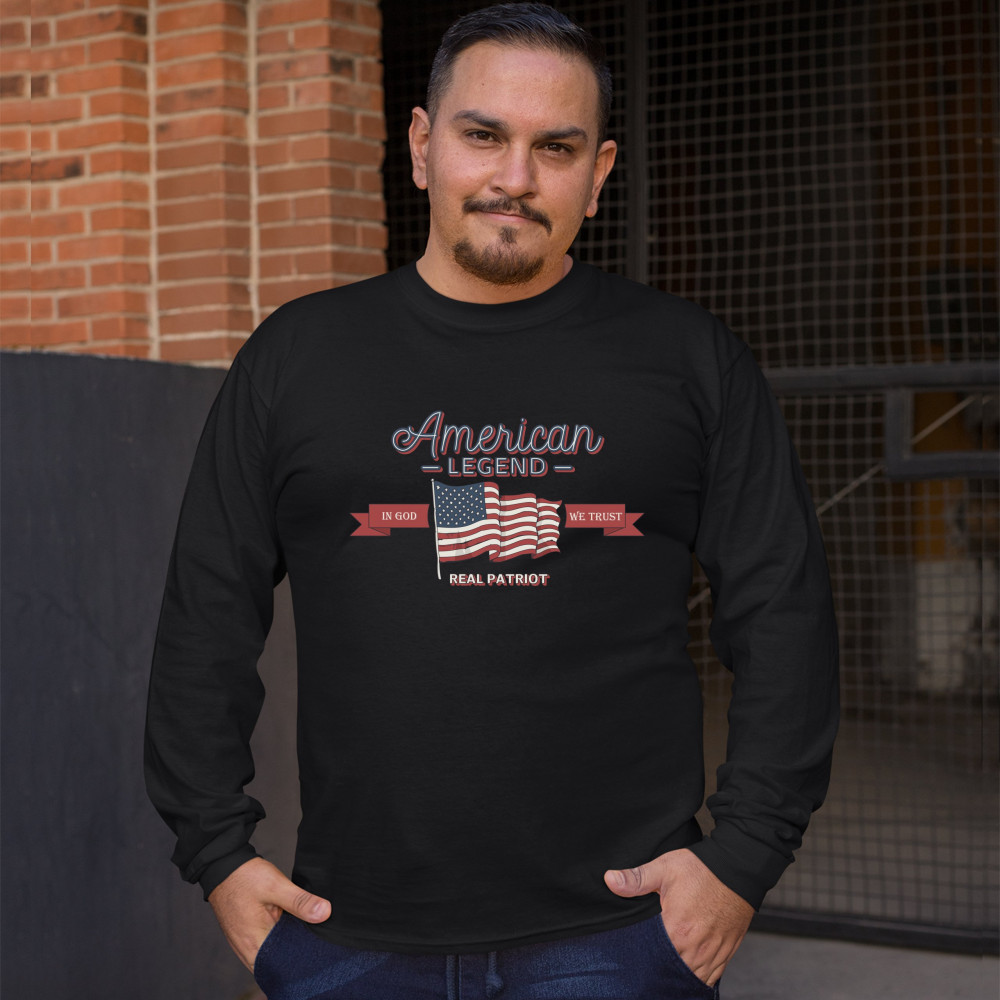 AMERICAN LEGEND REAL PATRIOT long sleeve t-shirt in god we trust 4th of july black