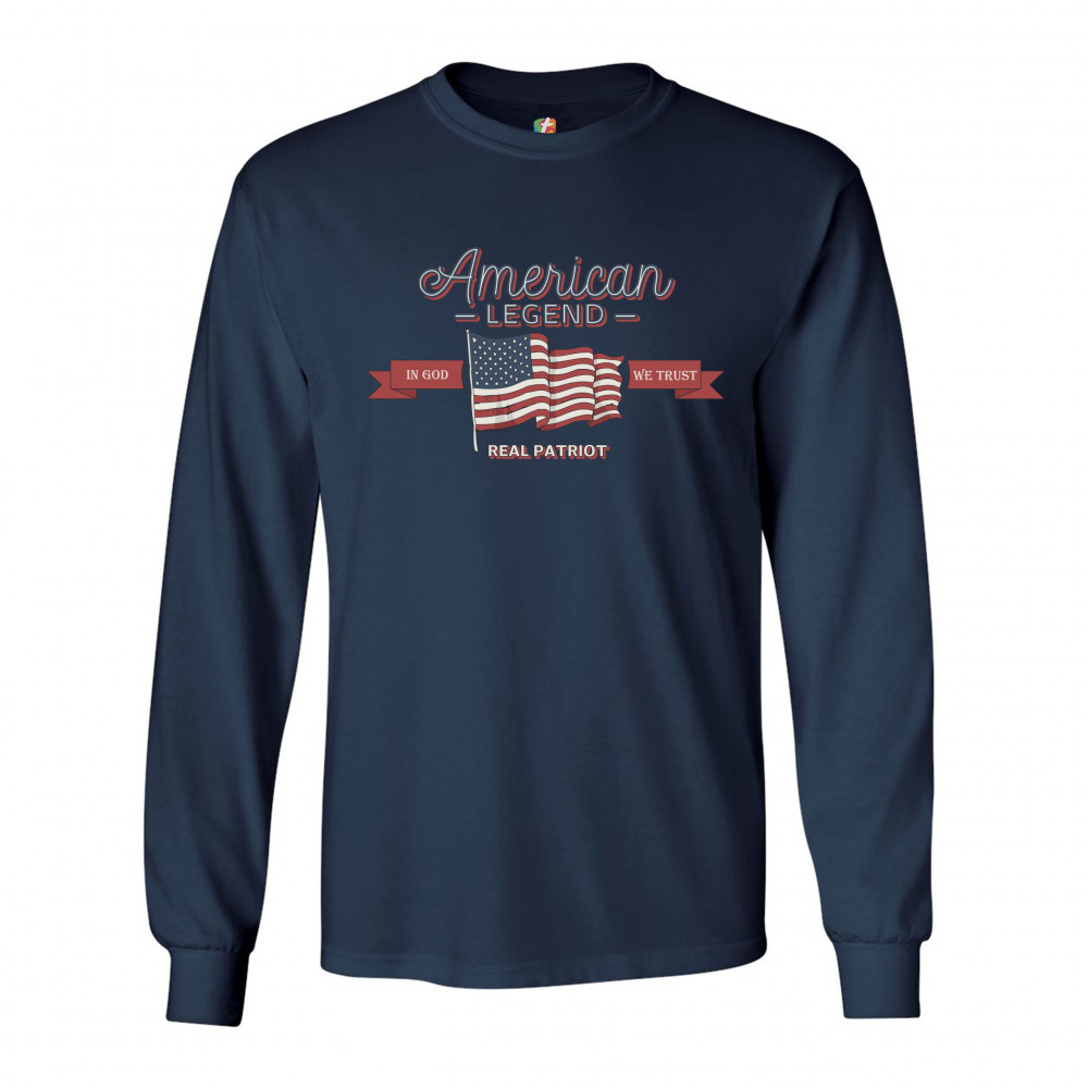AMERICAN LEGEND REAL PATRIOT long sleeve t-shirt in god we trust 4th of july navy blue