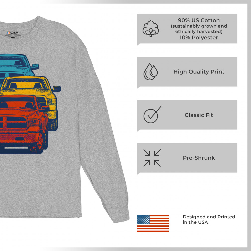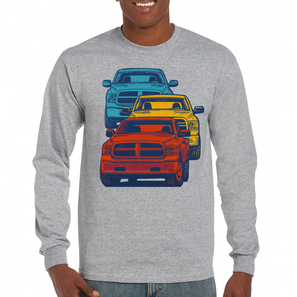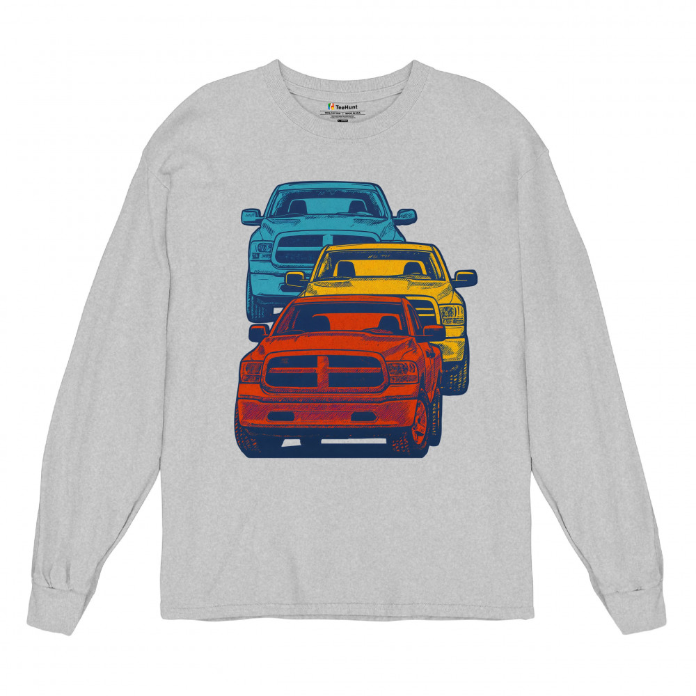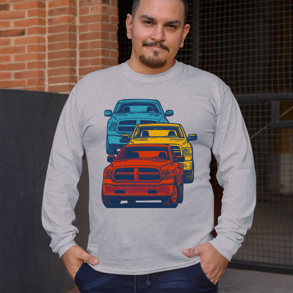 Boldly stacked and powerfully styled, this multicolor truck design showcases red, yellow, and blue pickups in a vertical formation. Made for fans of lifted truck culture, horsepower, and off-road pride, it celebrates diesel grit, road attitude, and the spirit of truck meets and gearhead unity.