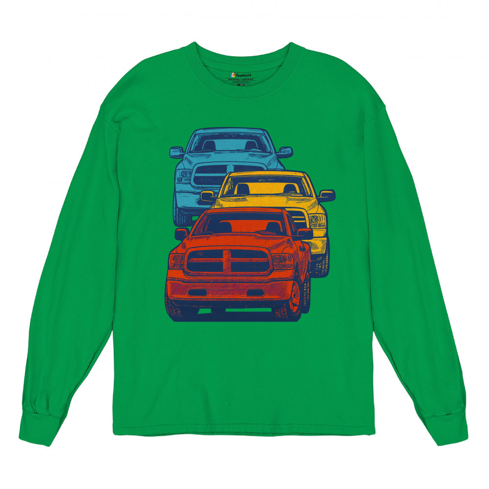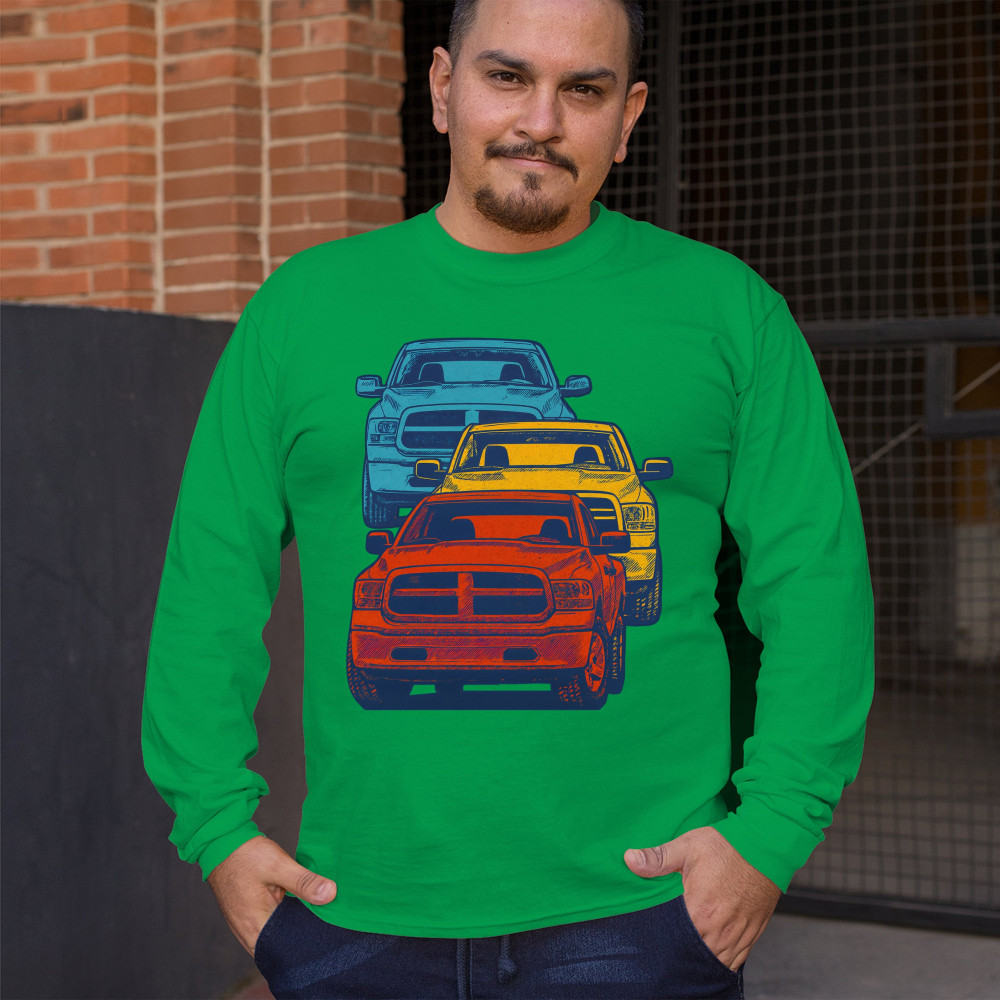 Boldly stacked and powerfully styled, this multicolor truck design showcases red, yellow, and blue pickups in a vertical formation. Made for fans of lifted truck culture, horsepower, and off-road pride, it celebrates diesel grit, road attitude, and the spirit of truck meets and gearhead unity.