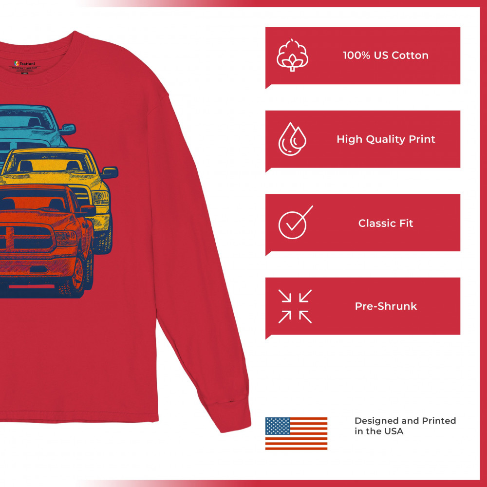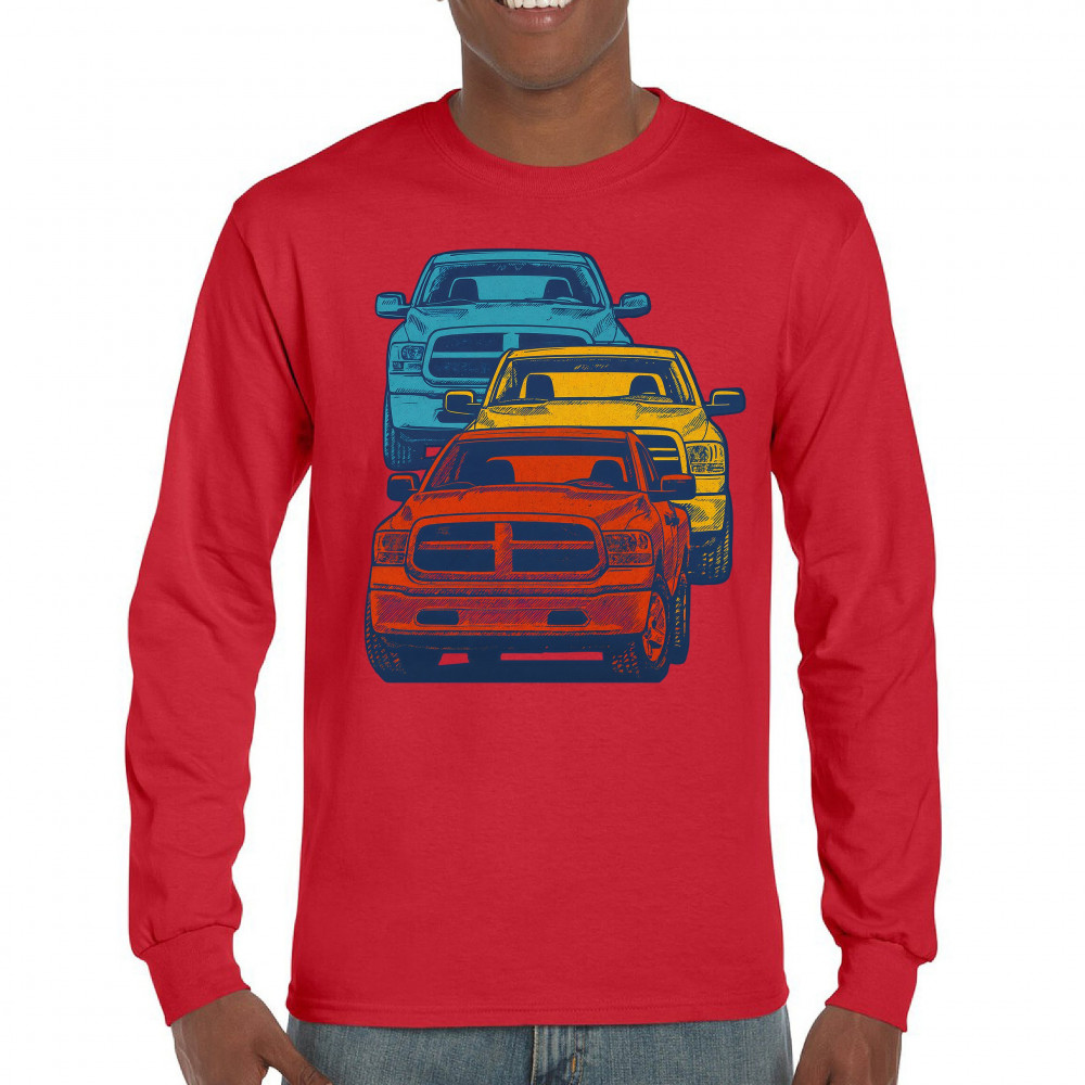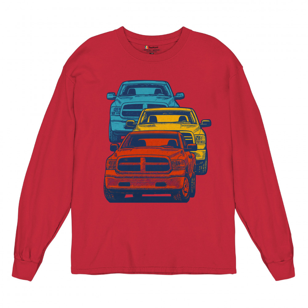 Boldly stacked and powerfully styled, this multicolor truck design showcases red, yellow, and blue pickups in a vertical formation. Made for fans of lifted truck culture, horsepower, and off-road pride, it celebrates diesel grit, road attitude, and the spirit of truck meets and gearhead unity.