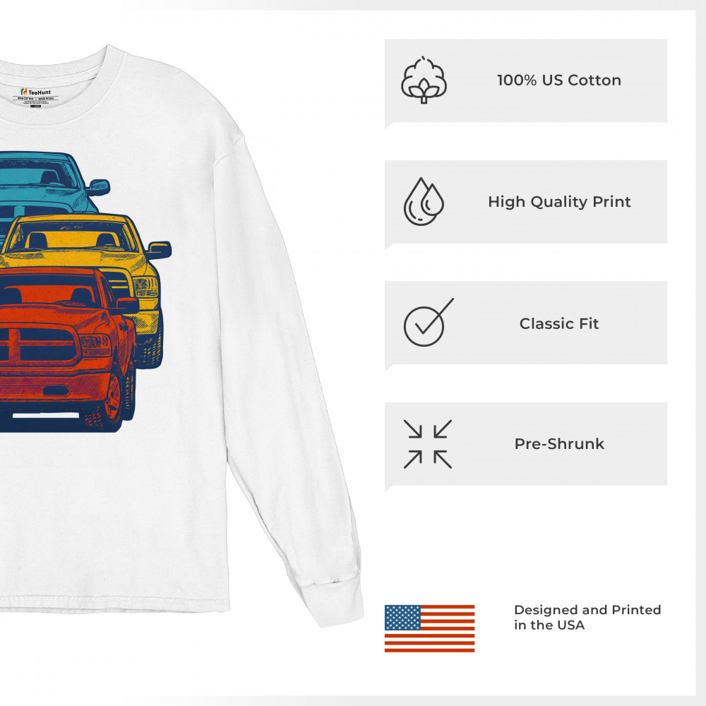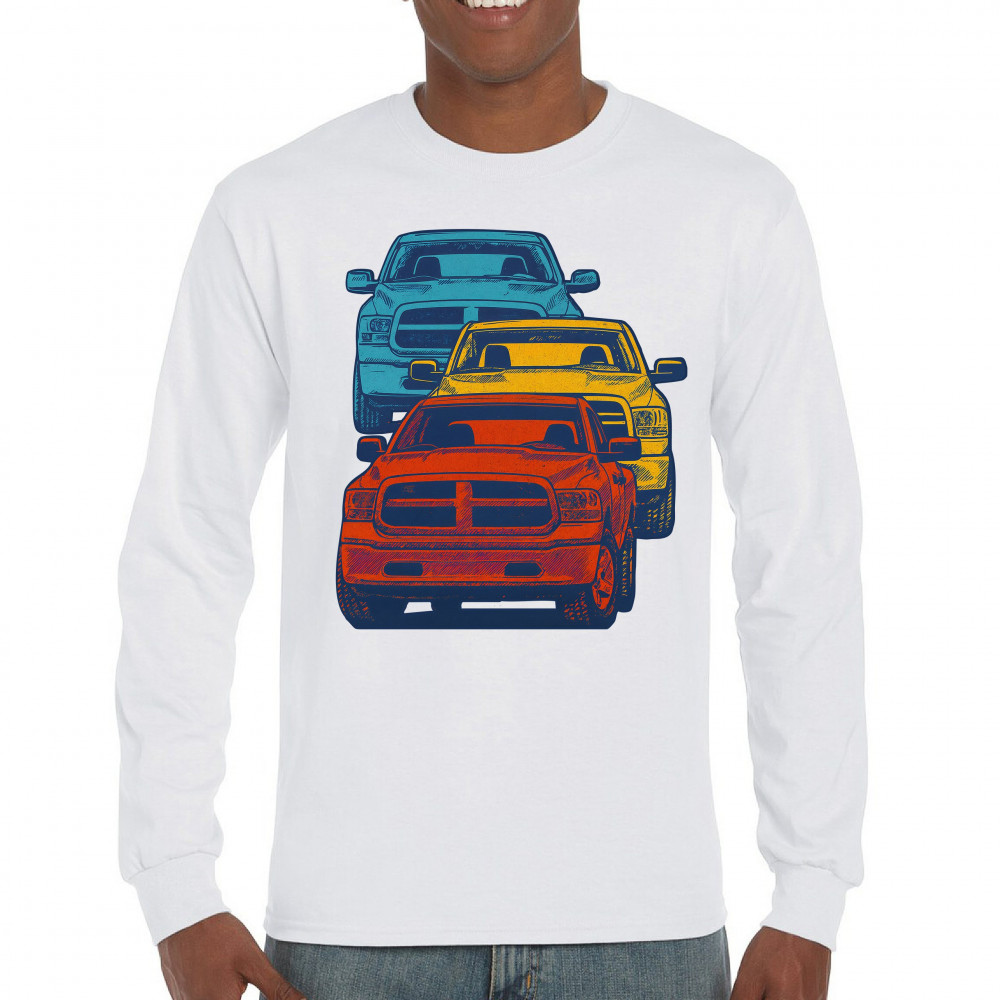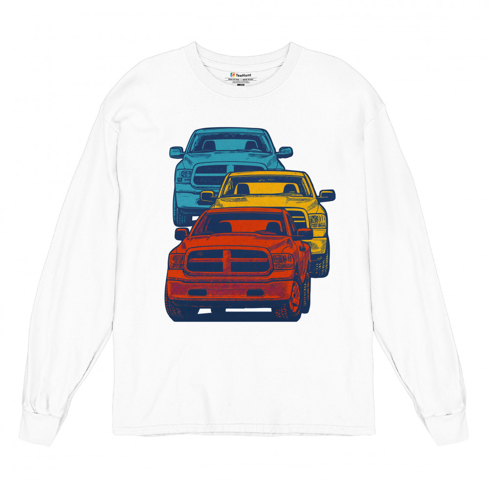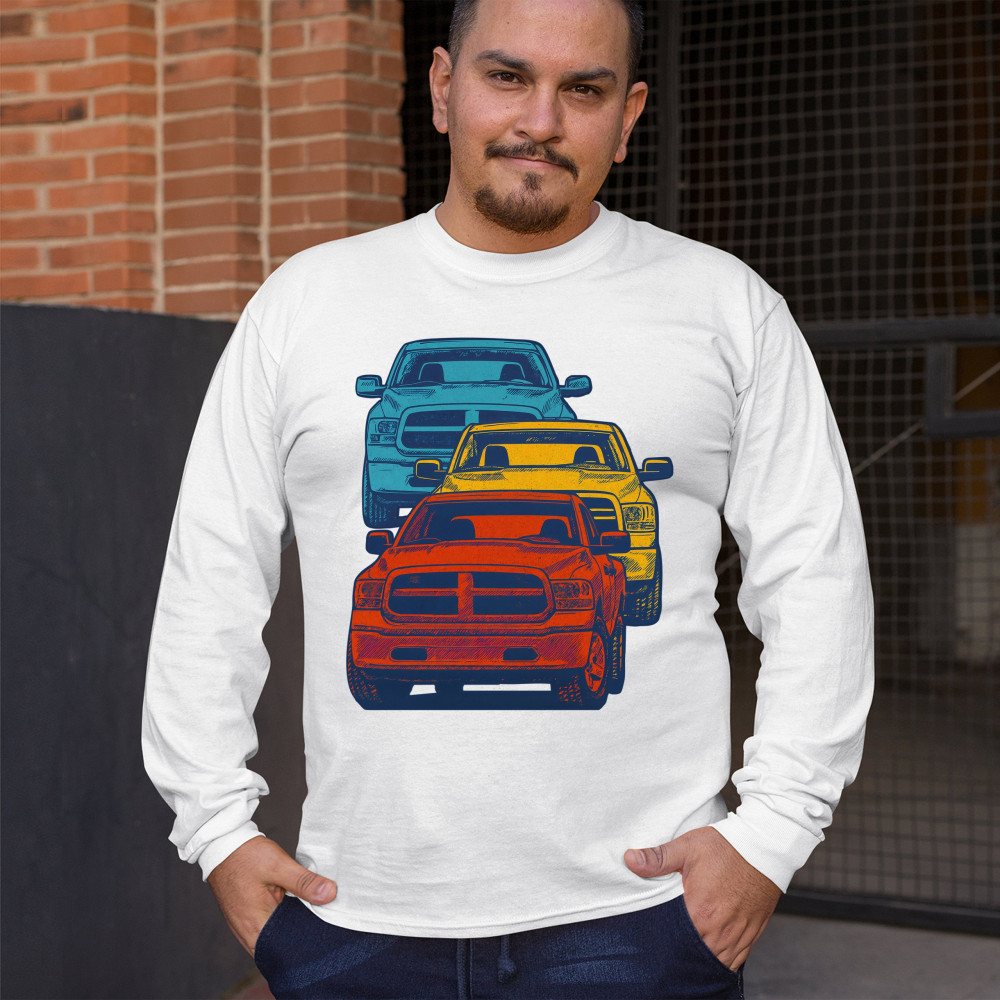 Boldly stacked and powerfully styled, this multicolor truck design showcases red, yellow, and blue pickups in a vertical formation. Made for fans of lifted truck culture, horsepower, and off-road pride, it celebrates diesel grit, road attitude, and the spirit of truck meets and gearhead unity.
