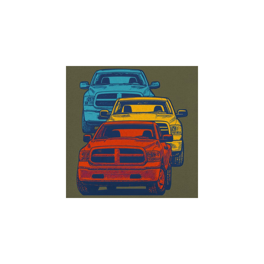 Boldly stacked and powerfully styled, this multicolor truck design showcases red, yellow, and blue pickups in a vertical formation. Made for fans of lifted truck culture, horsepower, and off-road pride, it celebrates diesel grit, road attitude, and the spirit of truck meets and gearhead unity.