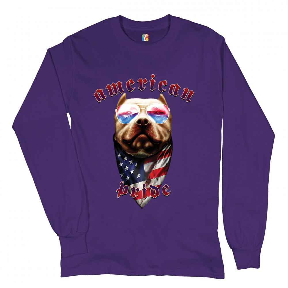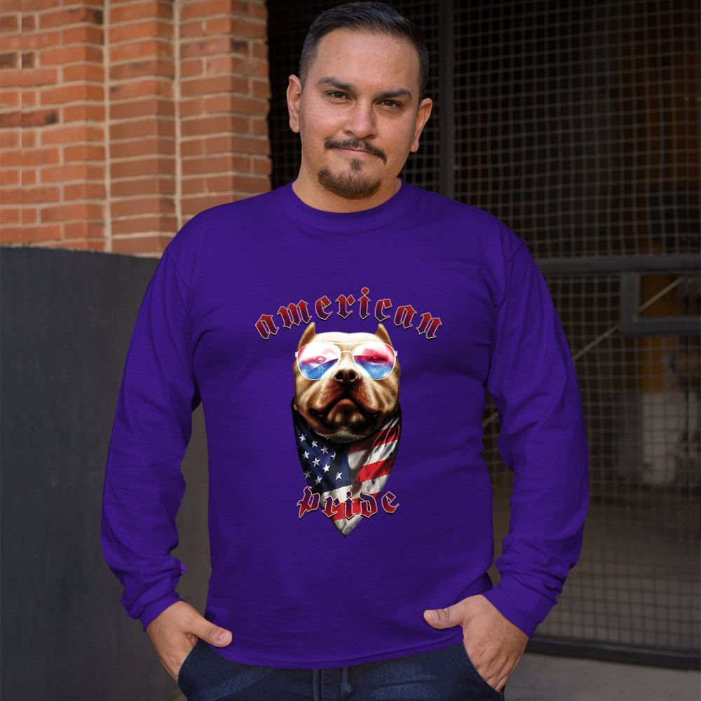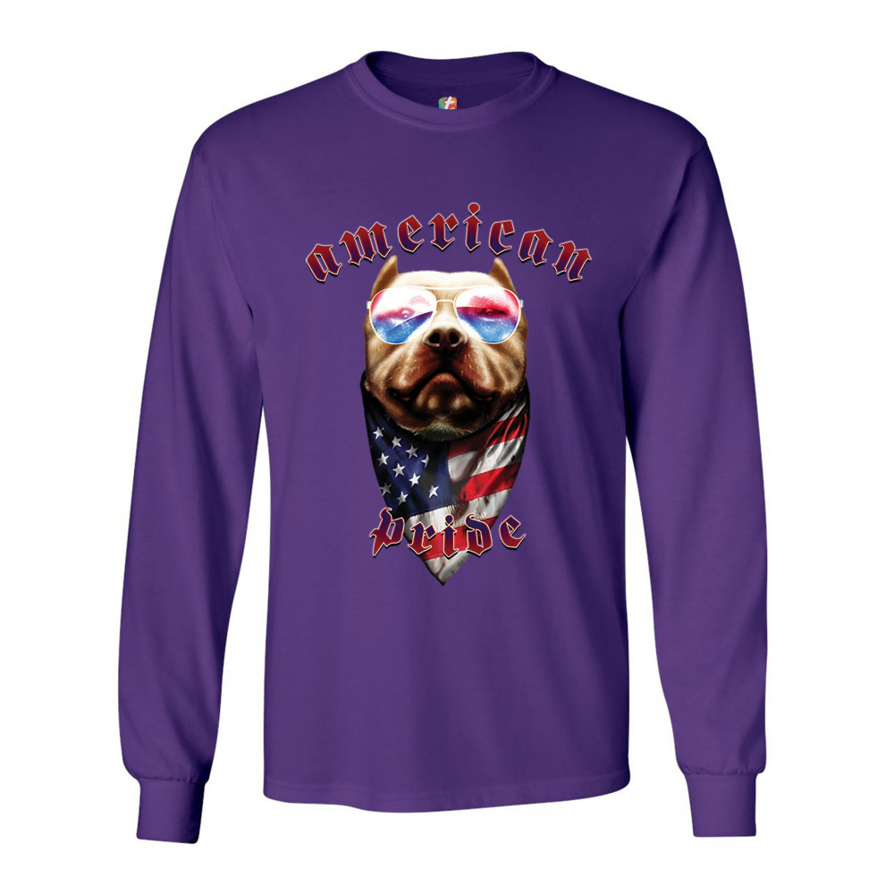 AMERICAN PRIDE PIT BULL long sleeve t-shirt us flag bandana patriotic dog lover purple