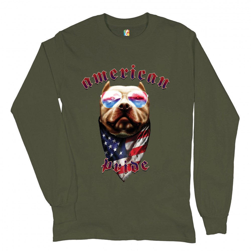 AMERICAN PRIDE PIT BULL long sleeve t-shirt us flag bandana patriotic dog lover military green