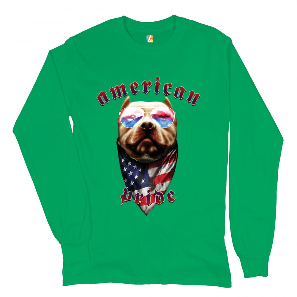 AMERICAN PRIDE PIT BULL long sleeve t-shirt us flag bandana patriotic dog lover green