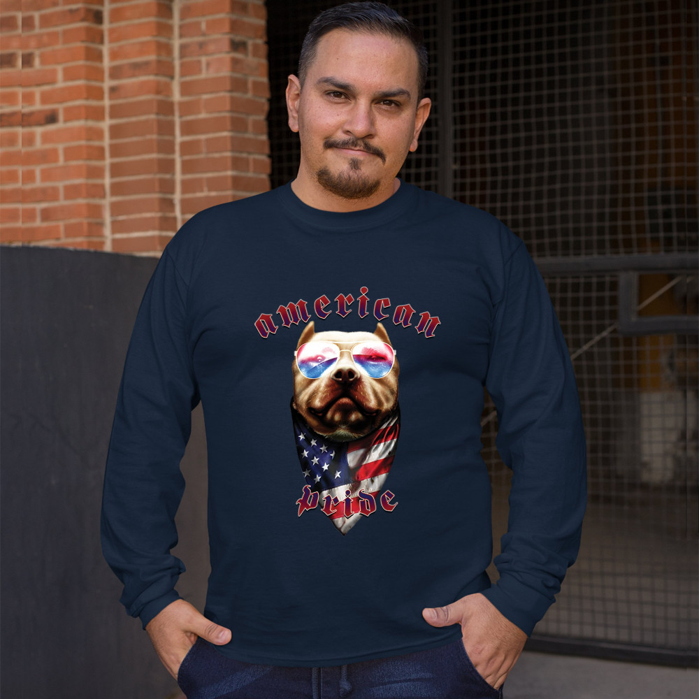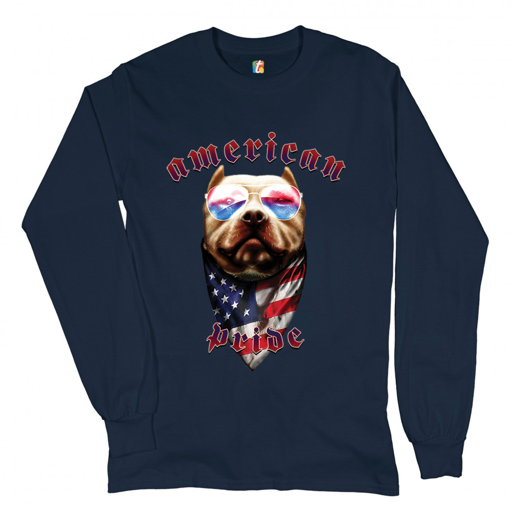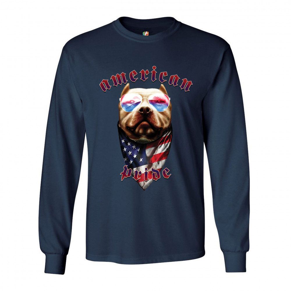 AMERICAN PRIDE PIT BULL long sleeve t-shirt us flag bandana patriotic dog lover navy blue