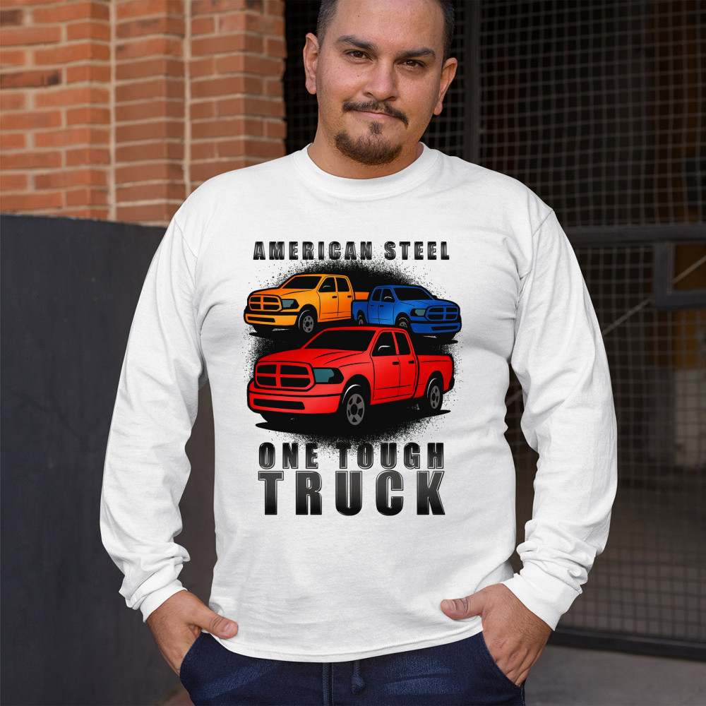 Celebrate the power of American steel with this rugged design featuring three bold pickup trucks in red, yellow, and blue. Made for gearheads, road warriors, and those who respect durability and performance. Perfect for truck shows, off-road events, and meetups.