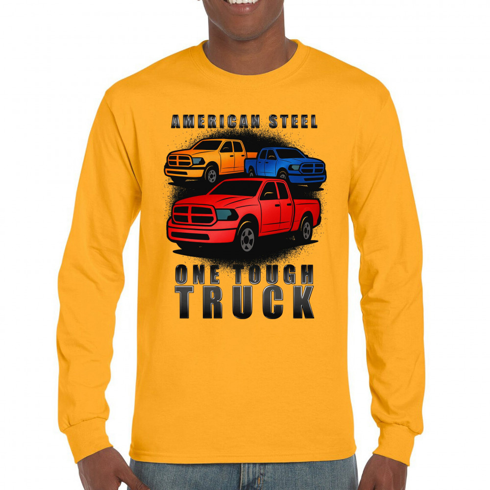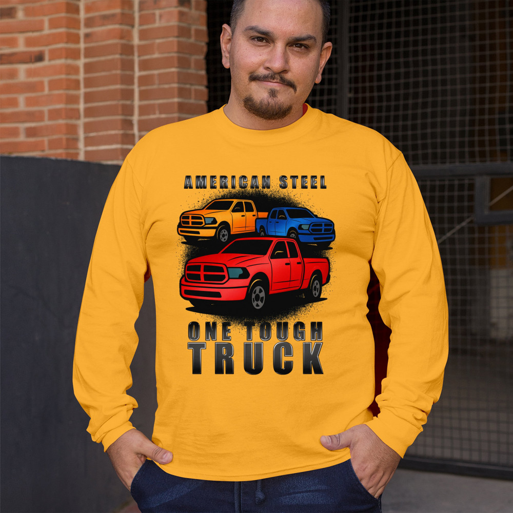 Celebrate the power of American steel with this rugged design featuring three bold pickup trucks in red, yellow, and blue. Made for gearheads, road warriors, and those who respect durability and performance. Perfect for truck shows, off-road events, and meetups.
