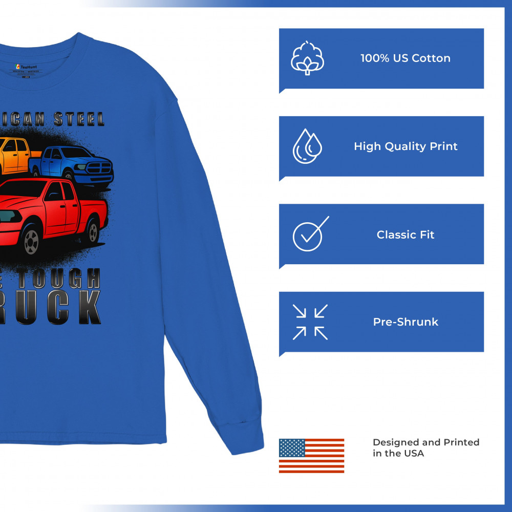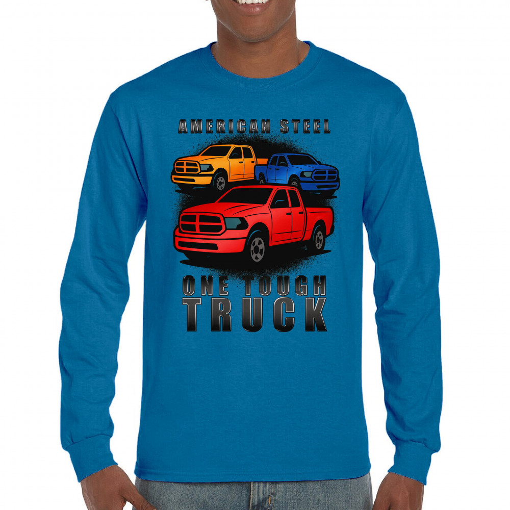 Celebrate the power of American steel with this rugged design featuring three bold pickup trucks in red, yellow, and blue. Made for gearheads, road warriors, and those who respect durability and performance. Perfect for truck shows, off-road events, and meetups.