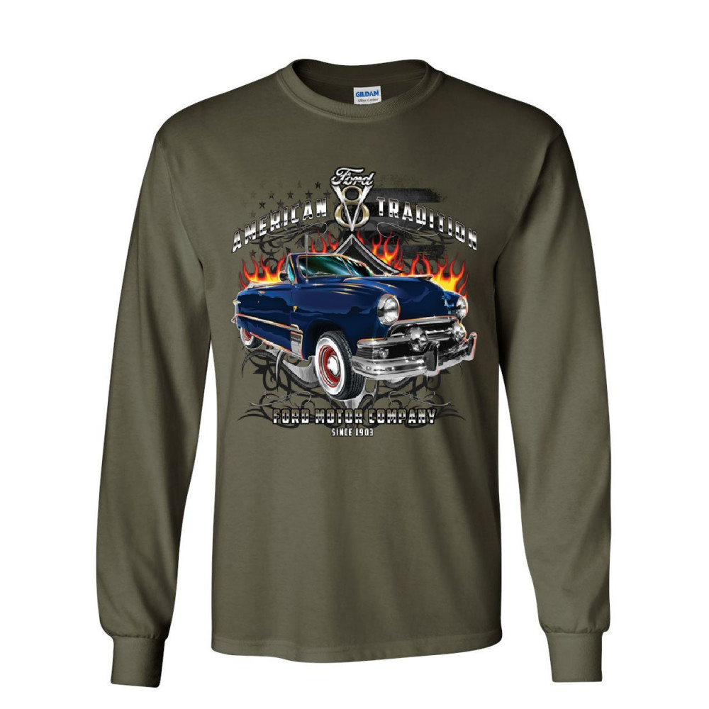 AMERICAN TRADITION ford motor company long sleeve t-shirt classic since 1903 tee military green