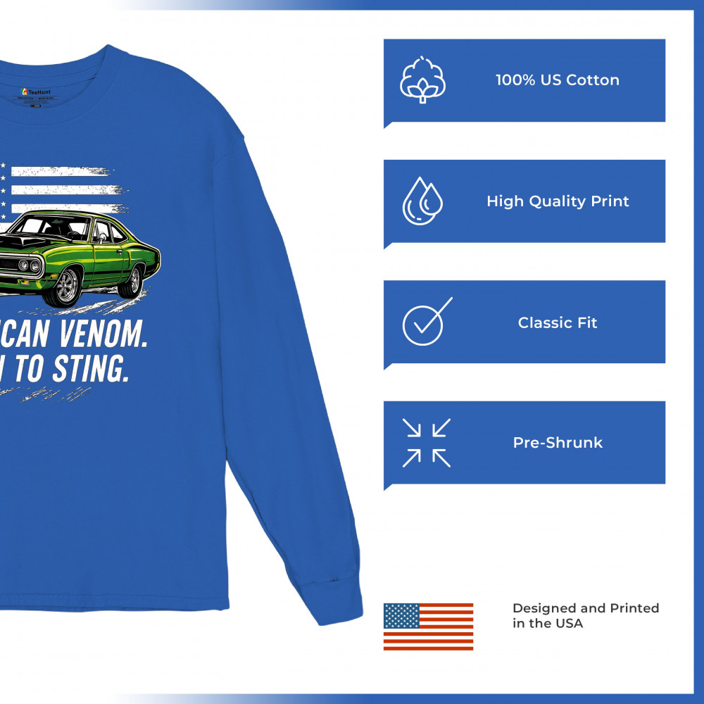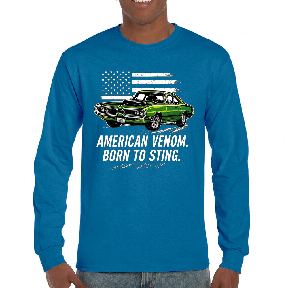 Inject venom into your street style with this bold green muscle car design. With “Born to Sting†power and a backdrop of American pride, this graphic is perfect for Scat fans, gearheads, and drivers who embrace speed, dominance, and the sound of true muscle. Rule car meets, rev battles, and highway runs with unmatched attitude.