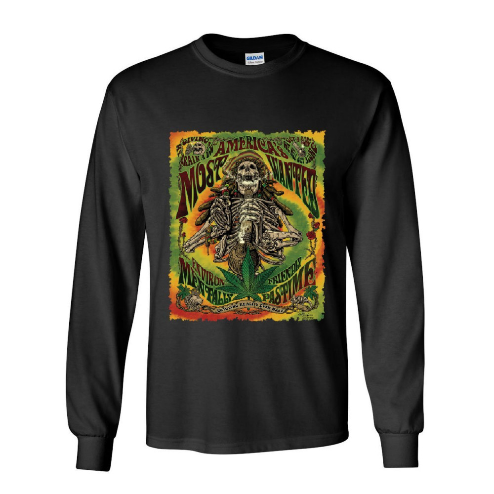 AMERICA'S MOST WANTED long sleeve t-shirt 420 smoking weed marijuana rasta tee black