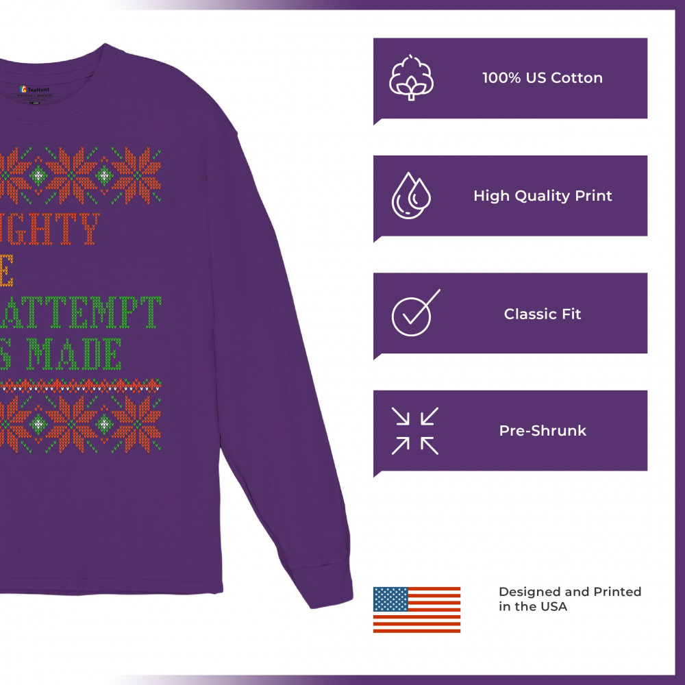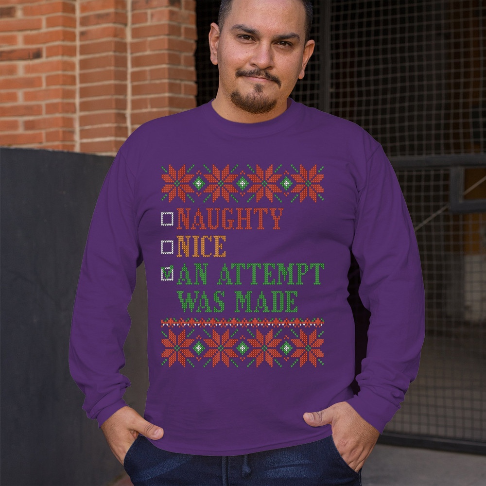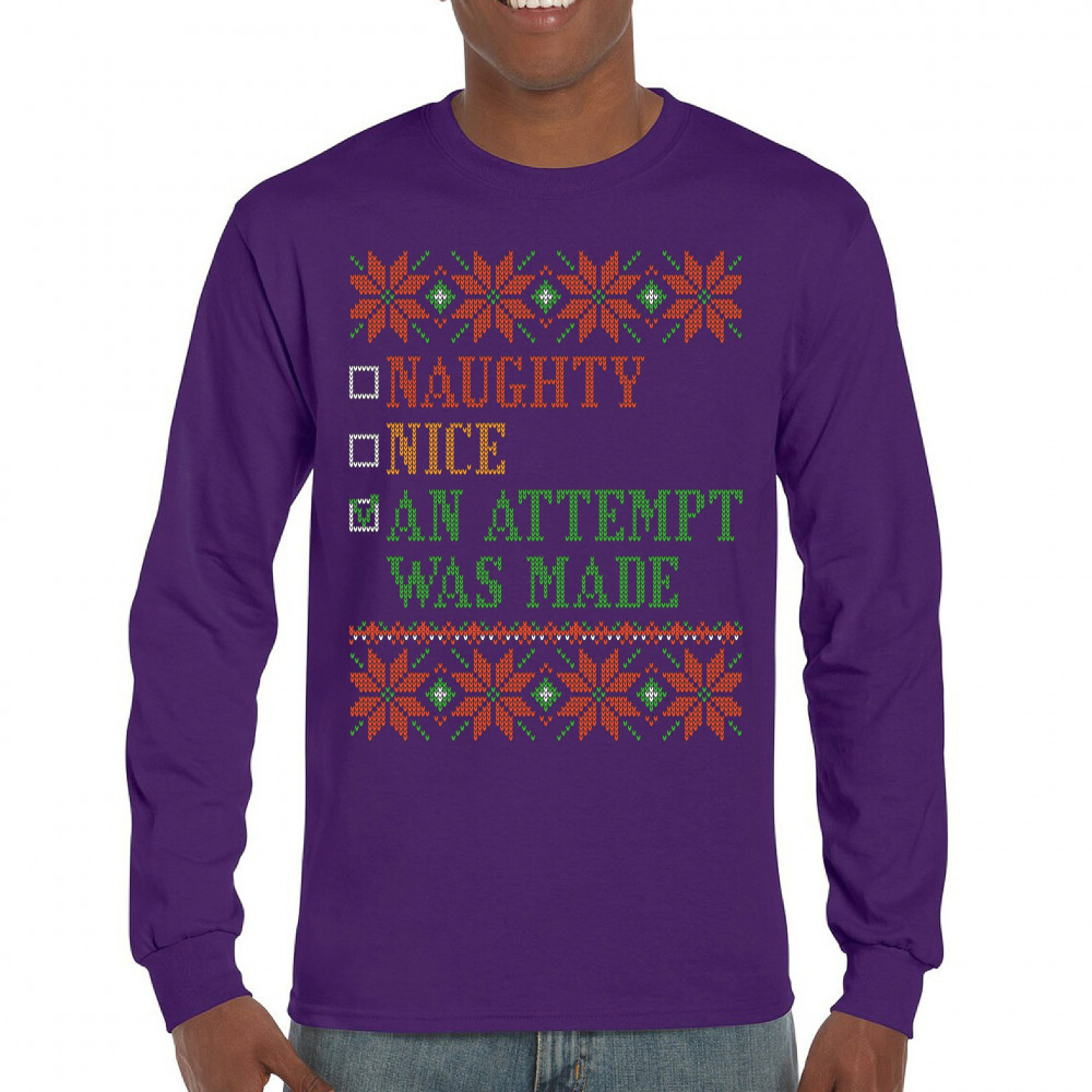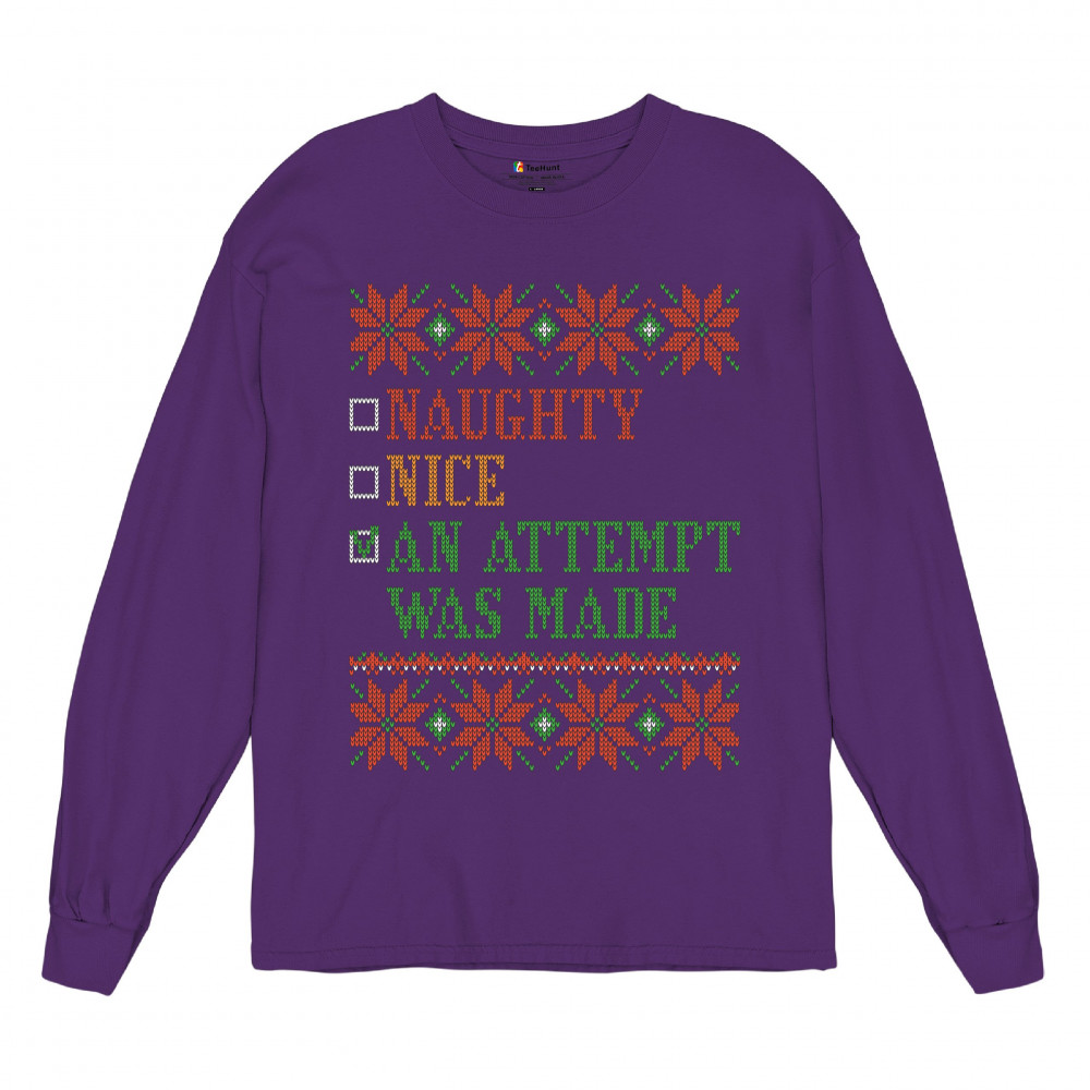AN ATTEMPT WAS MADE long sleeve t-shirt ugly sweater naughty or nice christmas purple