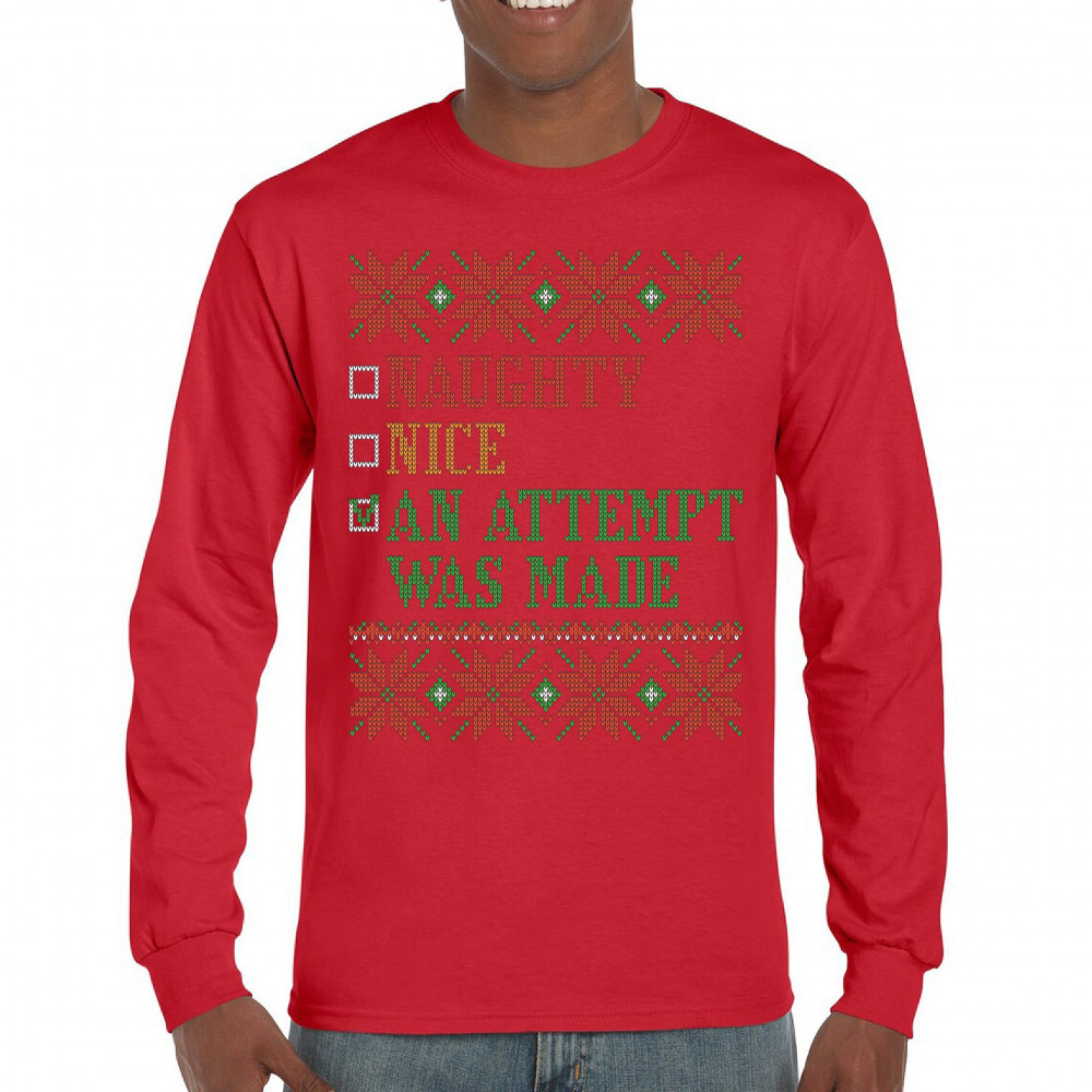 AN ATTEMPT WAS MADE long sleeve t-shirt ugly sweater naughty or nice christmas red