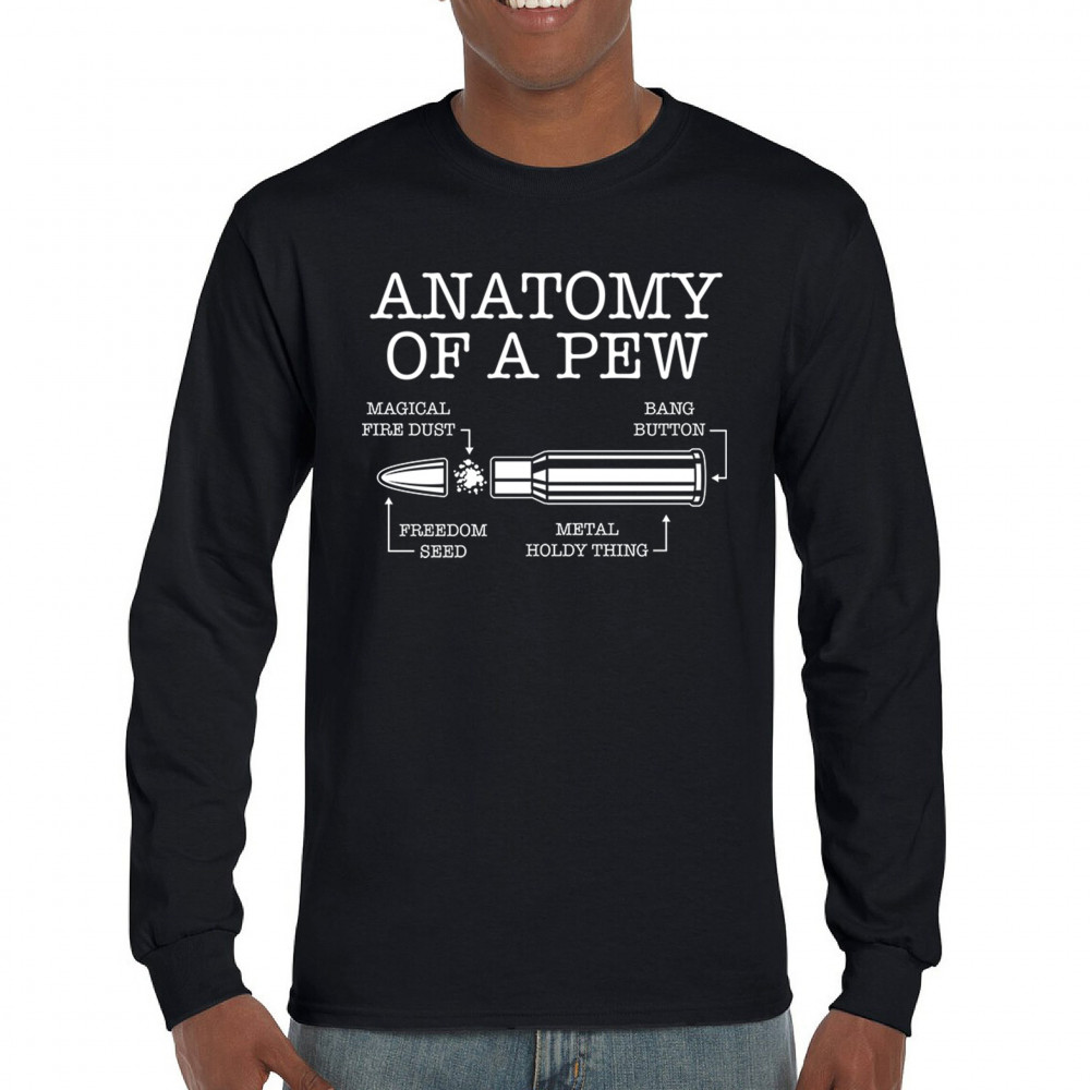 Embrace your right to chuckle with our "Anatomy of a Pew" tee. Whether you're a DD 214 holder, a fan of the "Don't Tread on Me" ethos, or simply proud to bear the Gadsden flag, this shirt is for you. It's a mix of wit, "Whiskey Tango Foxtrot" humor, and a firm "I am the militia" stance. This isn't just a garment; it's a proud proclamation for those who stand by the 4th Amendment.