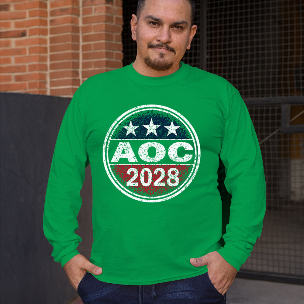 Show support for AOC 2028 with this patriotic distressed badge design. Great for progressives, rallies, events, and young political activists.