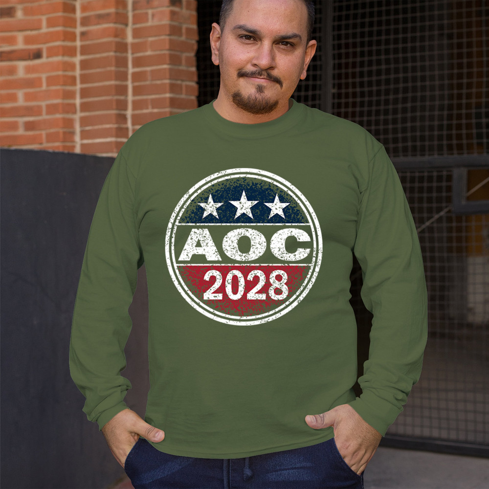 Show support for AOC 2028 with this patriotic distressed badge design. Great for progressives, rallies, events, and young political activists.