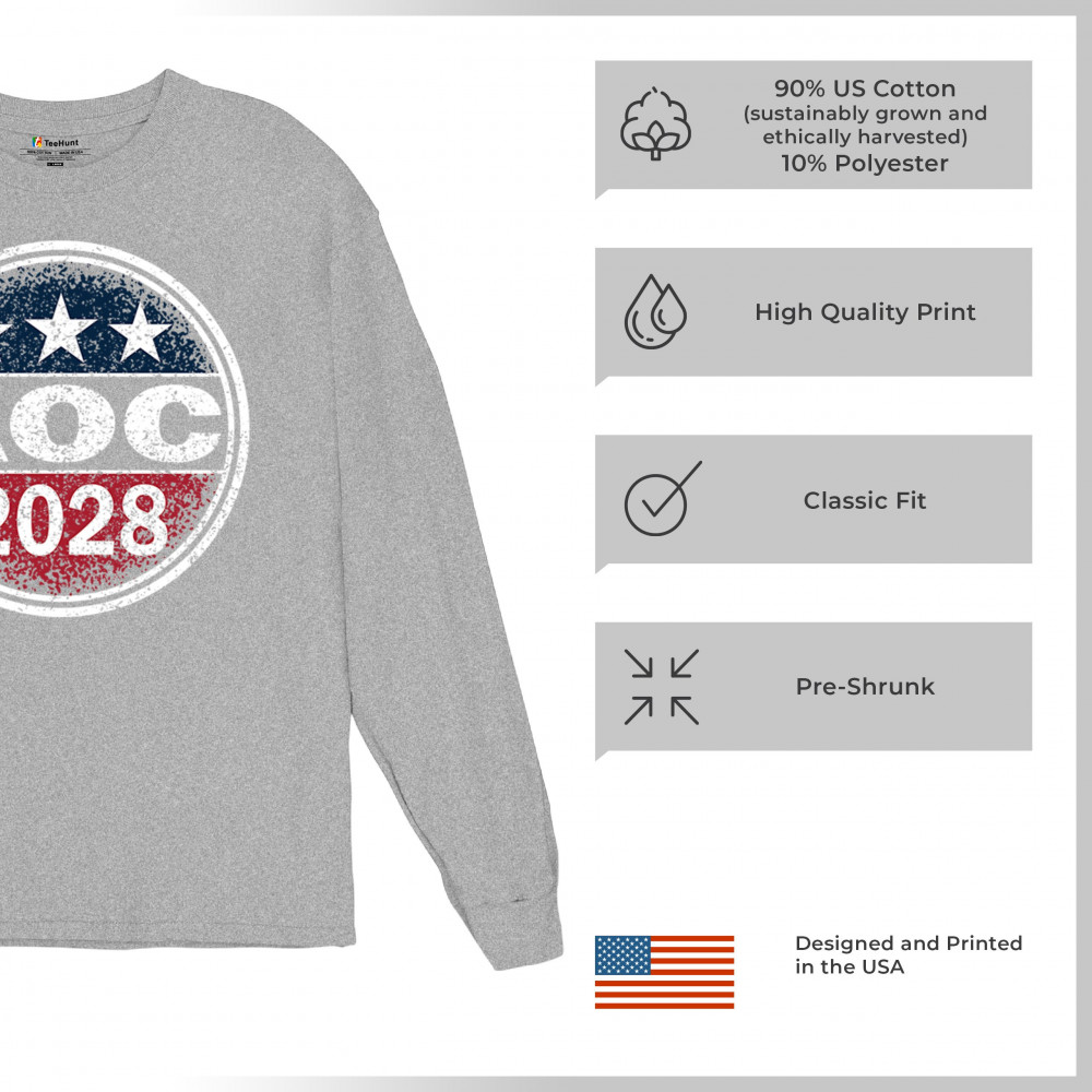 Show support for AOC 2028 with this patriotic distressed badge design. Great for progressives, rallies, events, and young political activists.