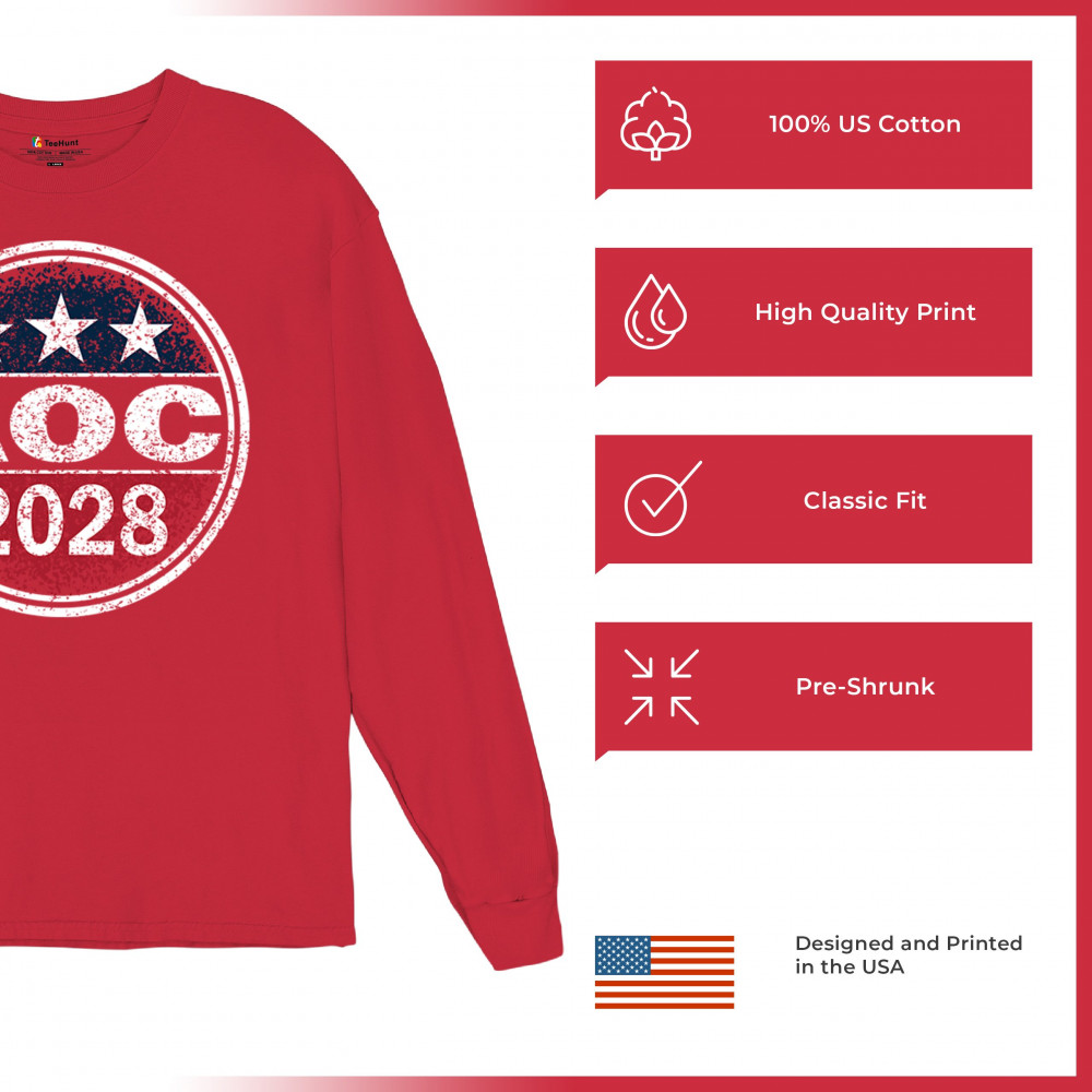 Show support for AOC 2028 with this patriotic distressed badge design. Great for progressives, rallies, events, and young political activists.