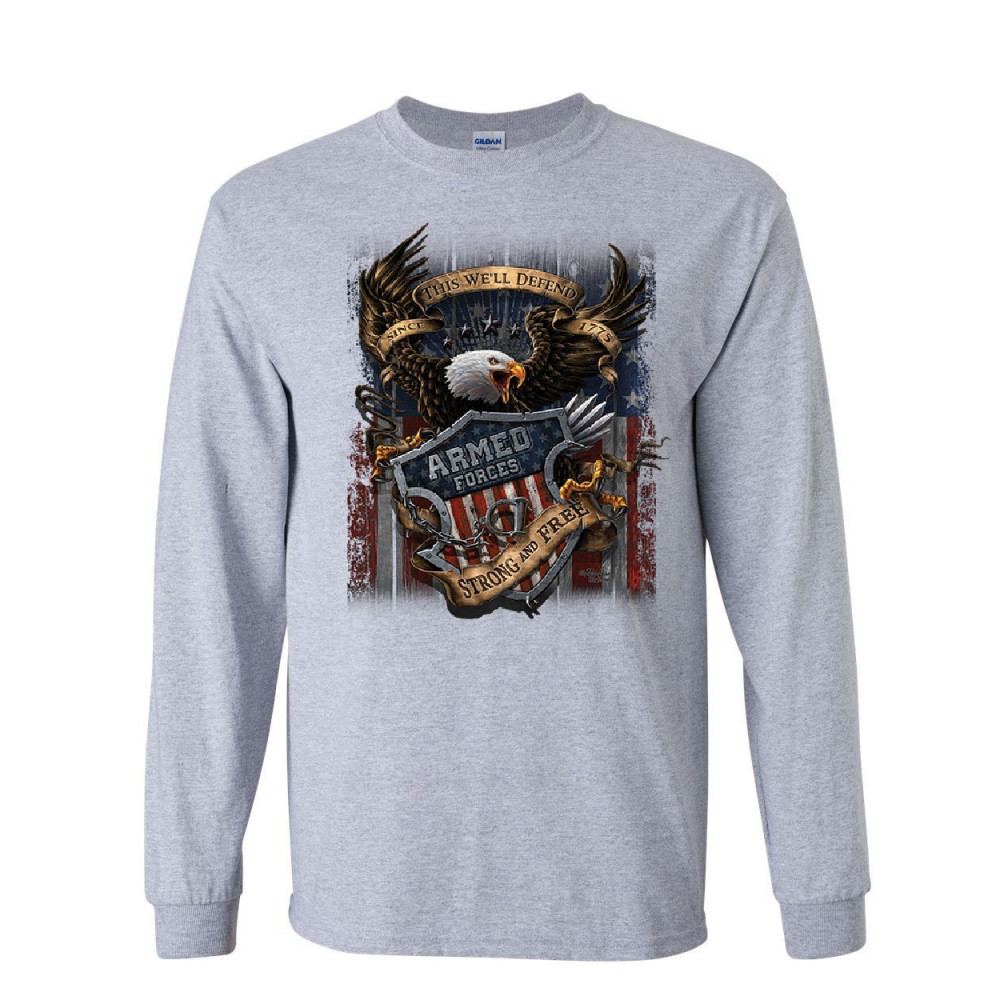 ARMED FORCES BALD EAGLE long sleeve t-shirt army this we'll defend us flag tee gray