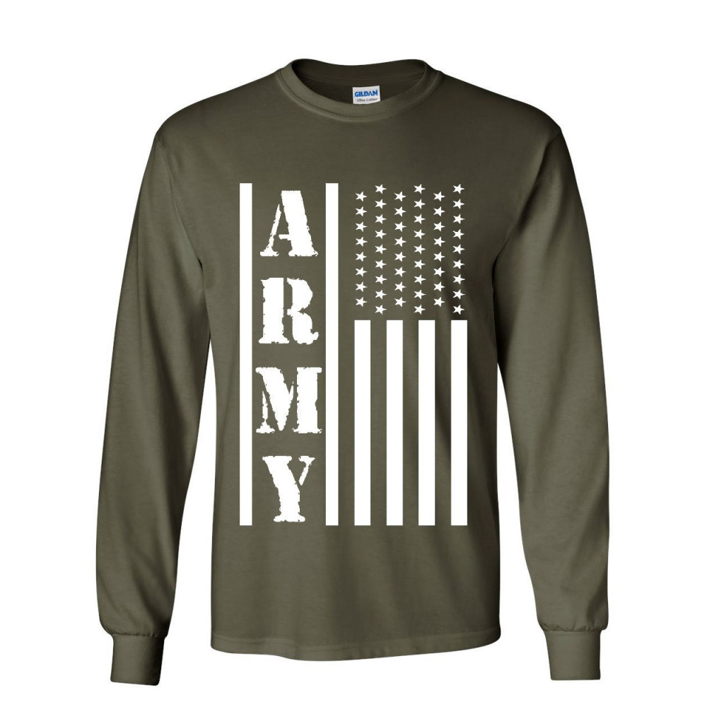 ARMY FLAG MILITARY long sleeve t-shirt patriot veteran stars & stripes honor tee military green