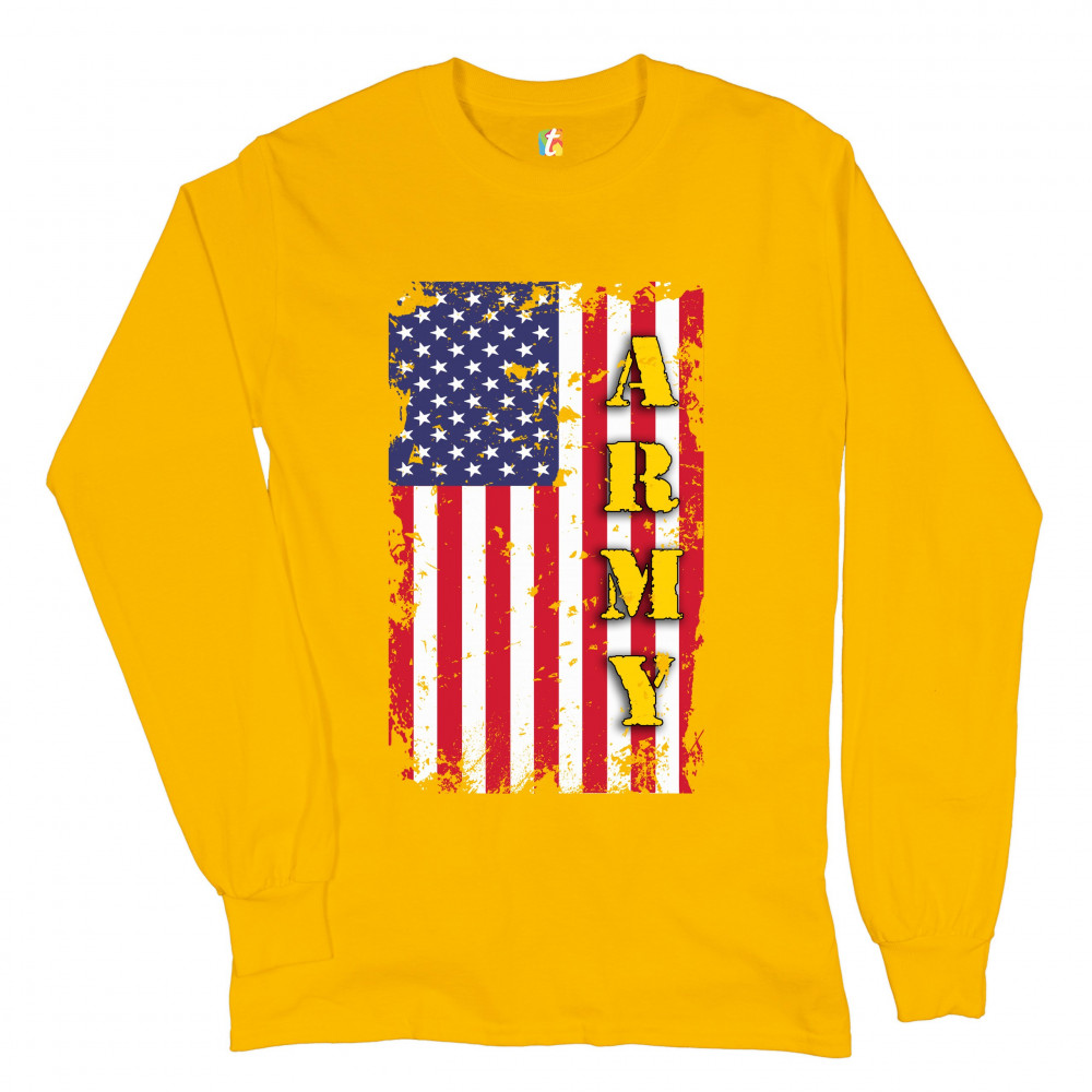 ARMY long sleeve t-shirt american flag united states armed forces patriotic yellow