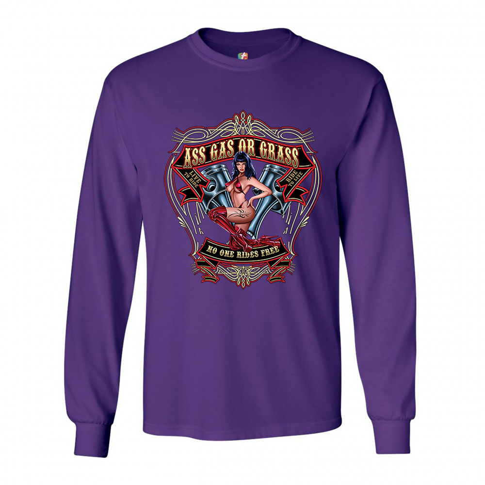 ASS GAS OR GRASS long sleeve t-shirt biker no one rides free live to ride purple