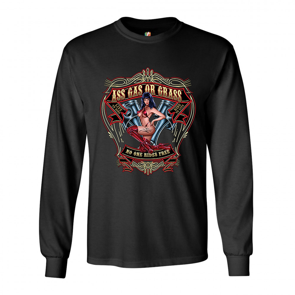 ASS GAS OR GRASS long sleeve t-shirt biker no one rides free live to ride black