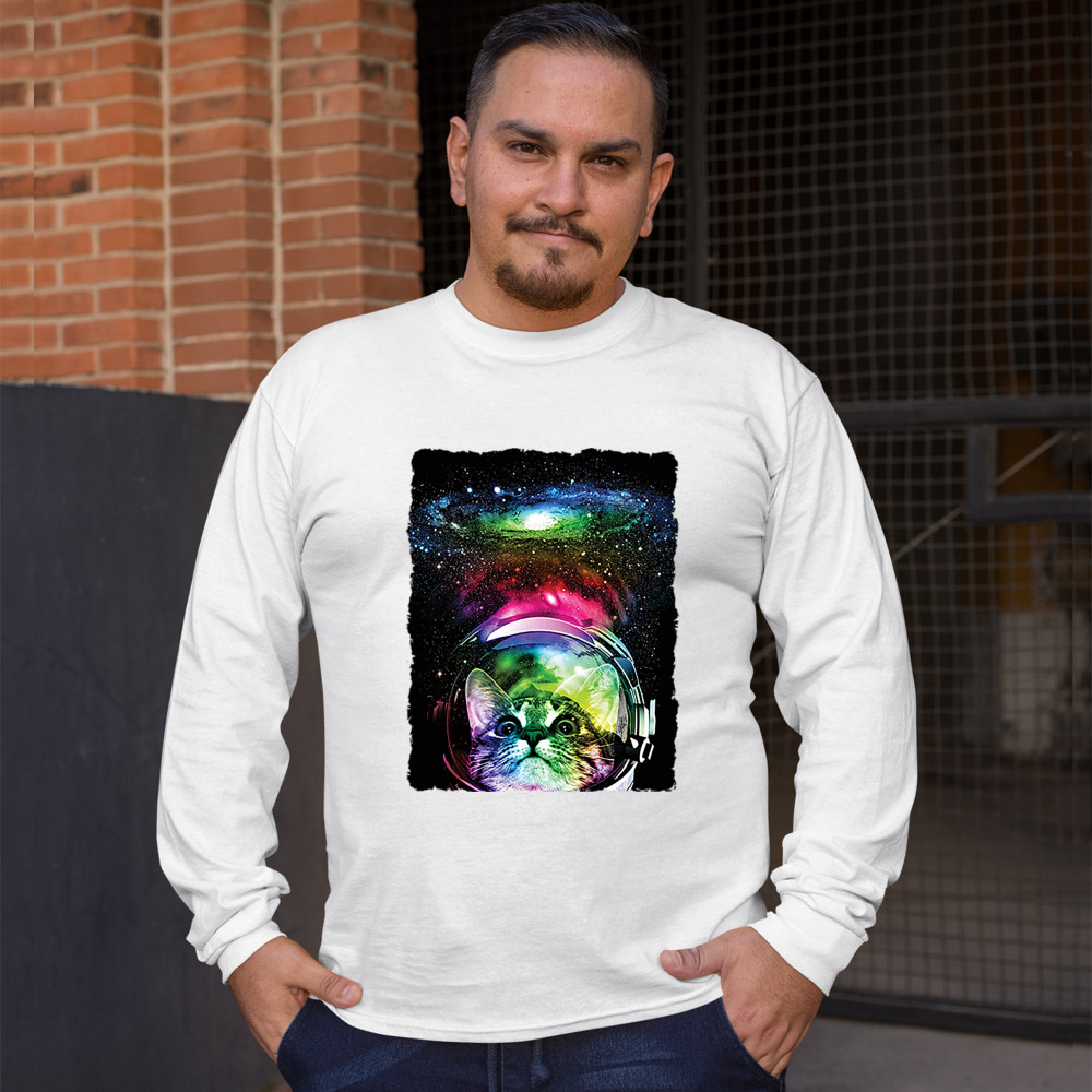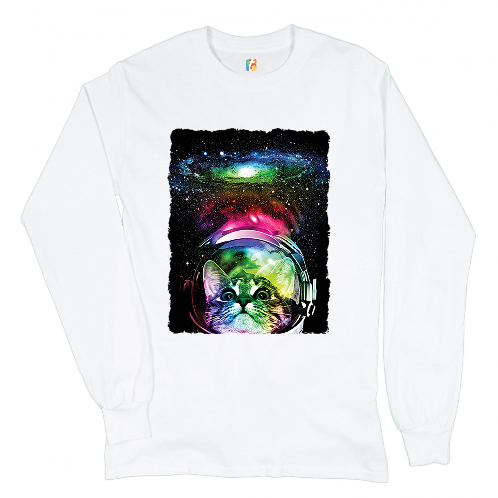 ASTRONAUT CAT long sleeve t-shirt space kitty white