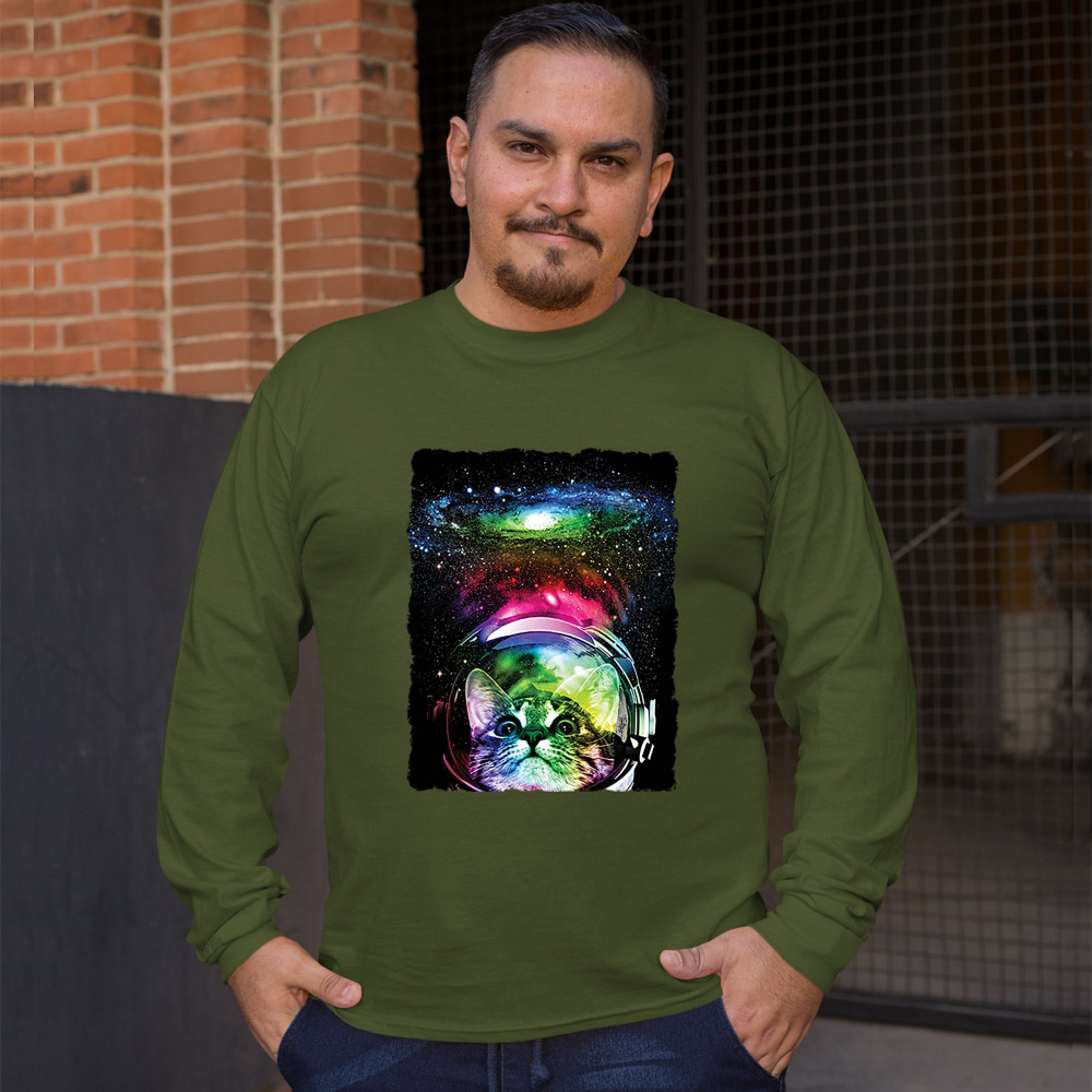 ASTRONAUT CAT long sleeve t-shirt space kitty military green