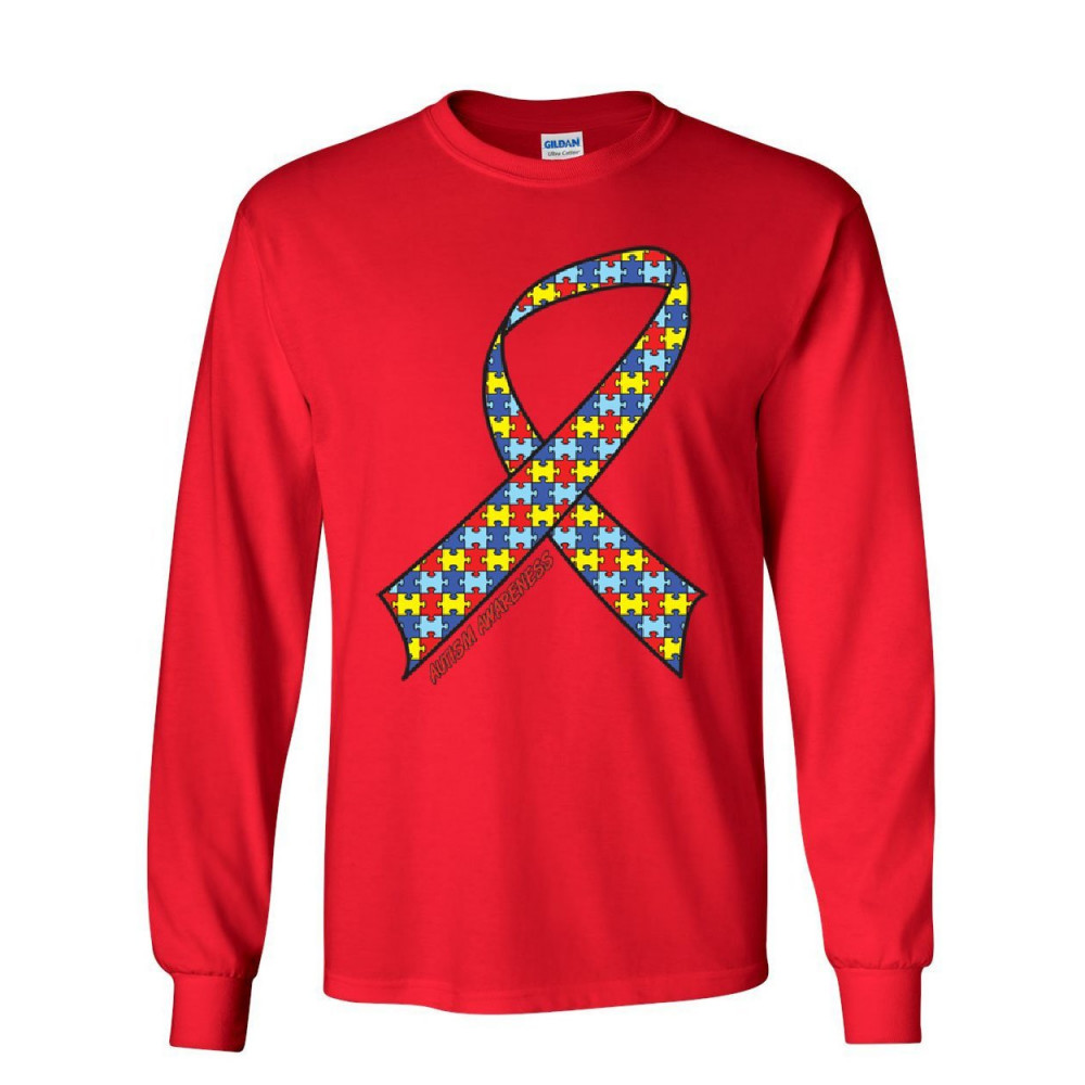 AUTISM AWARENESS RIBBON long sleeve t-shirt support care love asd asperger tee red
