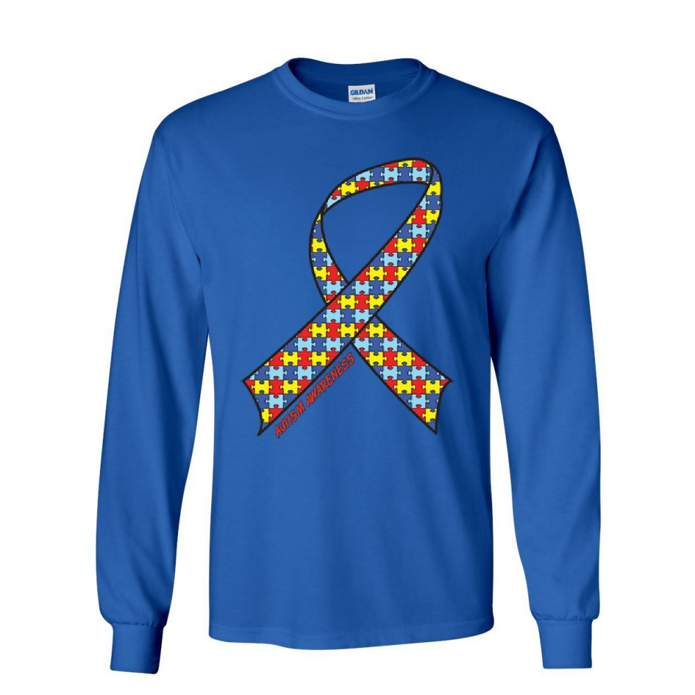 AUTISM AWARENESS RIBBON long sleeve t-shirt support care love asd asperger tee royal blue
