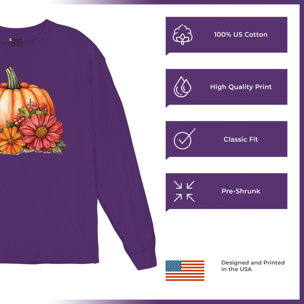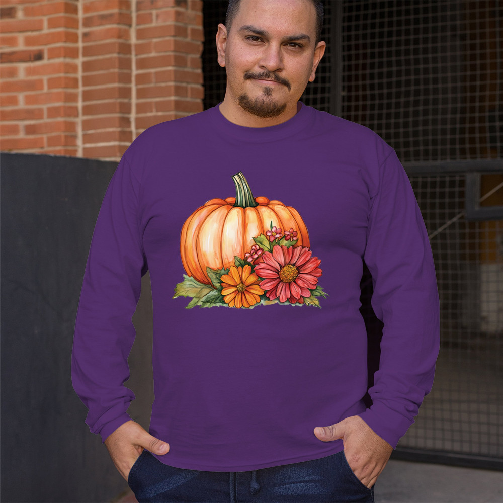 Celebrate autumn with our charming pumpkin and floral design. Perfect for seasonal decor, gifts, and showcasing your fall spirit. Ideal for Thanksgiving!