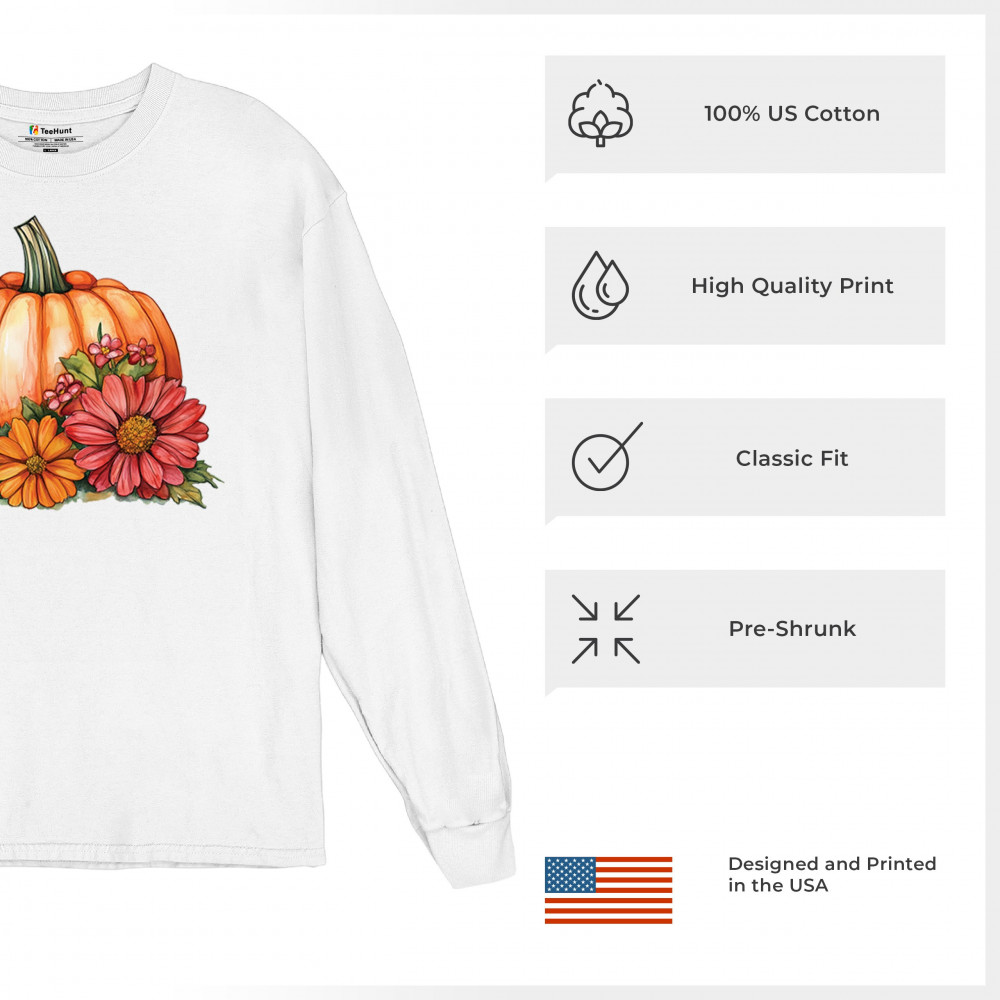 Celebrate autumn with our charming pumpkin and floral design. Perfect for seasonal decor, gifts, and showcasing your fall spirit. Ideal for Thanksgiving!