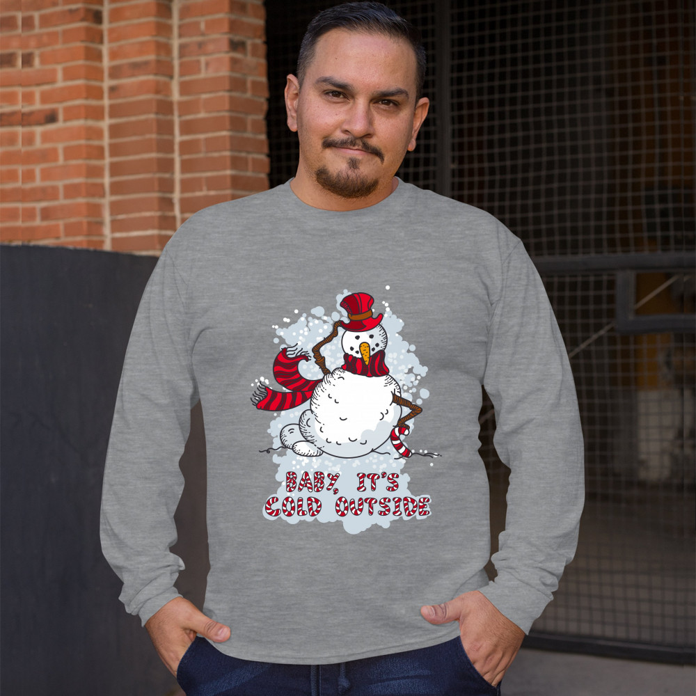 BABY, IT'S COLD OUTSIDE long sleeve t-shirt merry christmas snowman candy cane gray