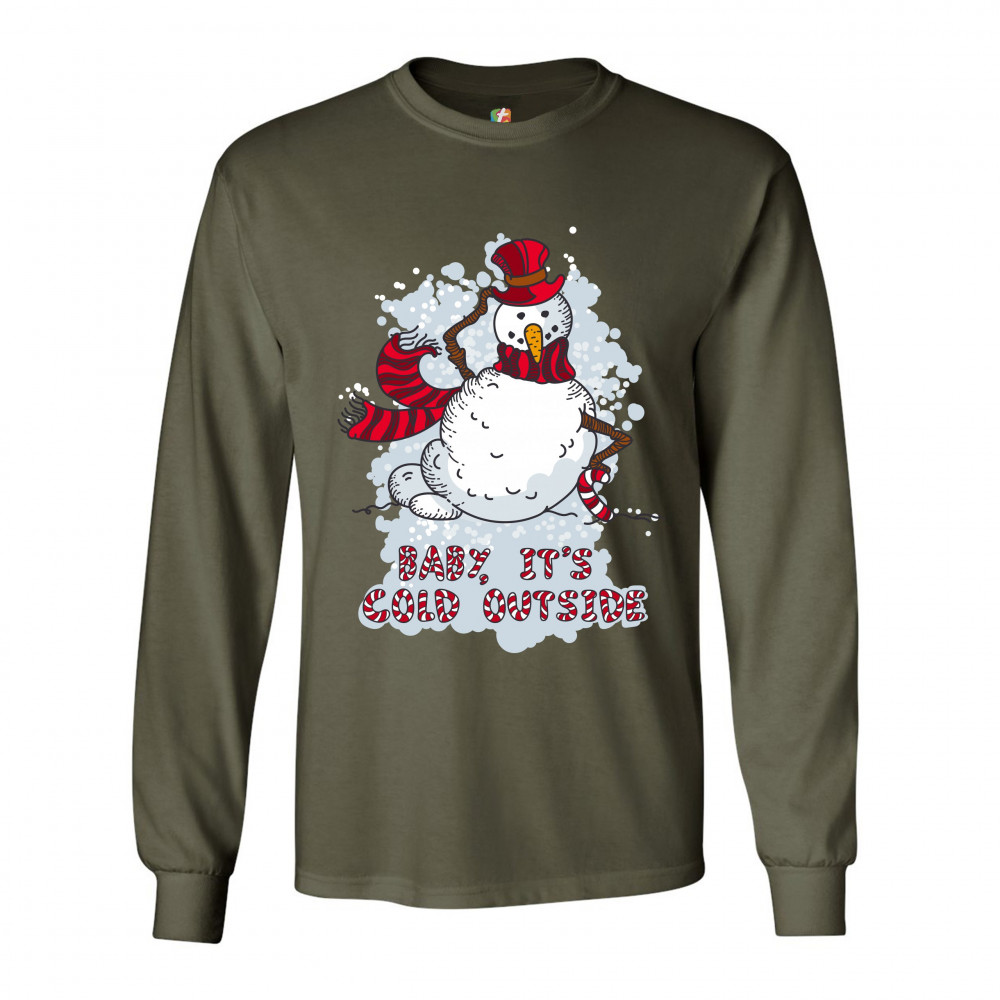 BABY, IT'S COLD OUTSIDE long sleeve t-shirt merry christmas snowman candy cane military green
