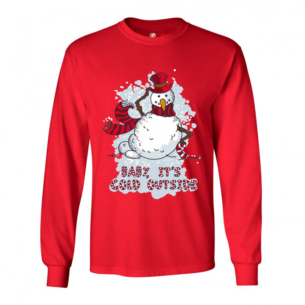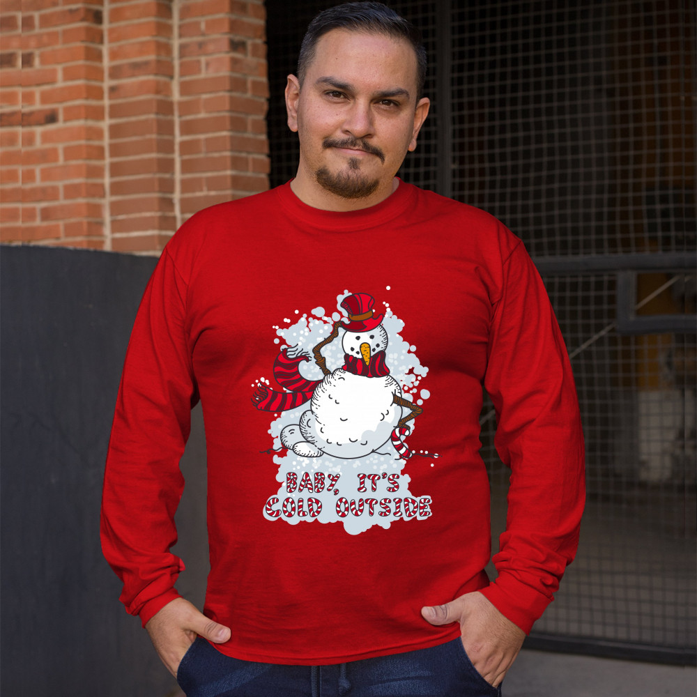 BABY, IT'S COLD OUTSIDE long sleeve t-shirt merry christmas snowman candy cane red