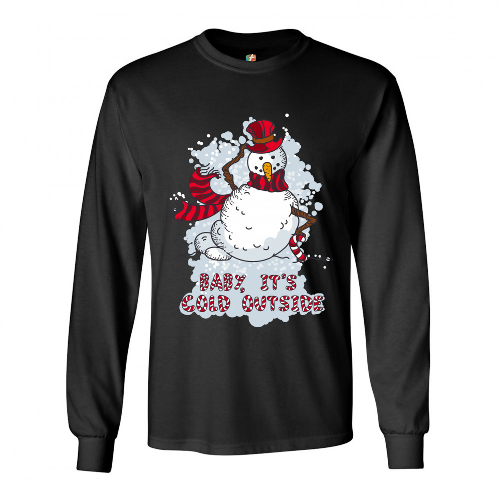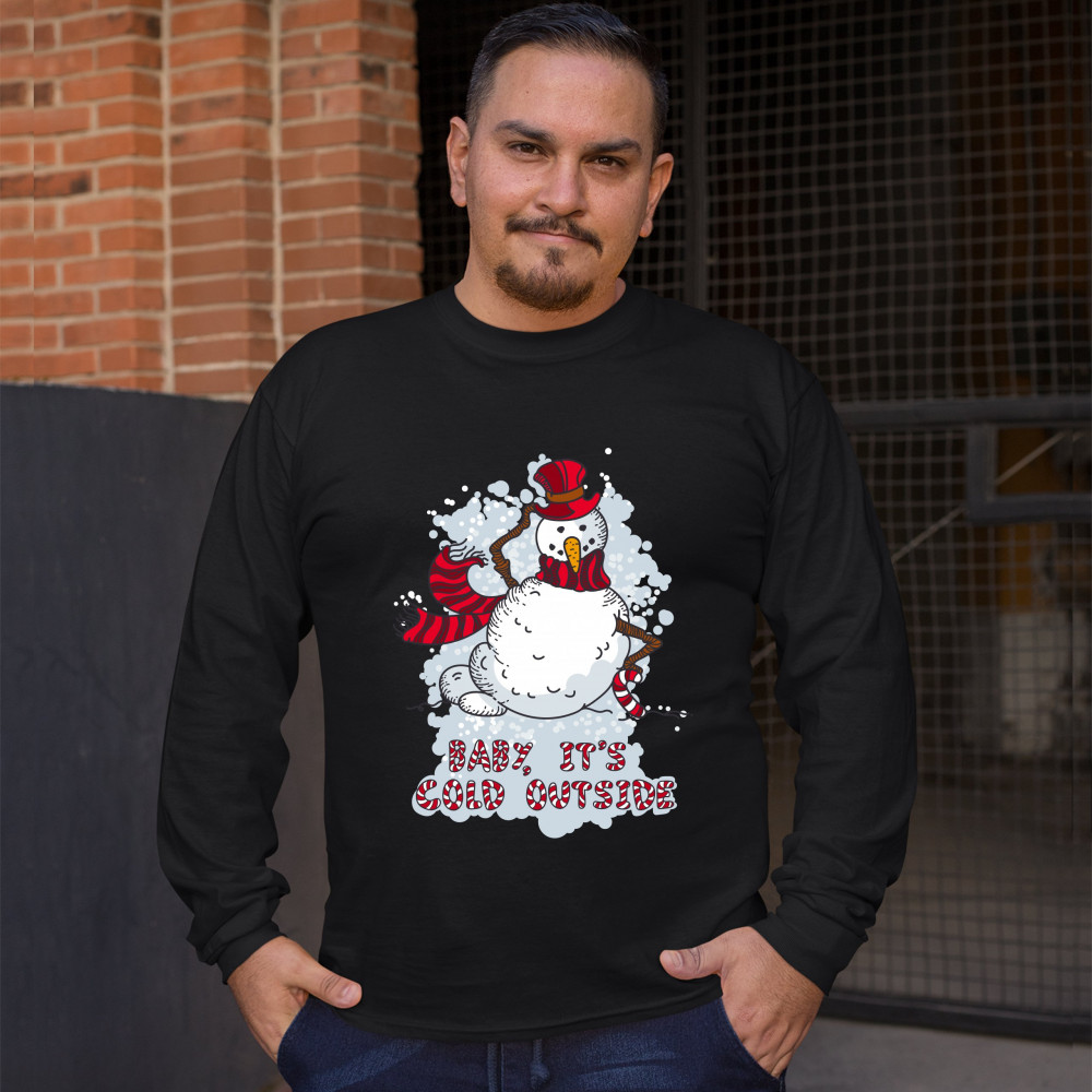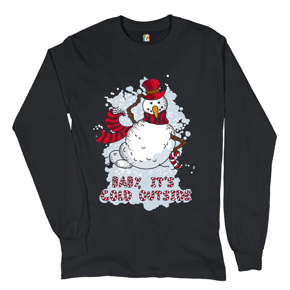 BABY, IT'S COLD OUTSIDE long sleeve t-shirt merry christmas snowman candy cane black